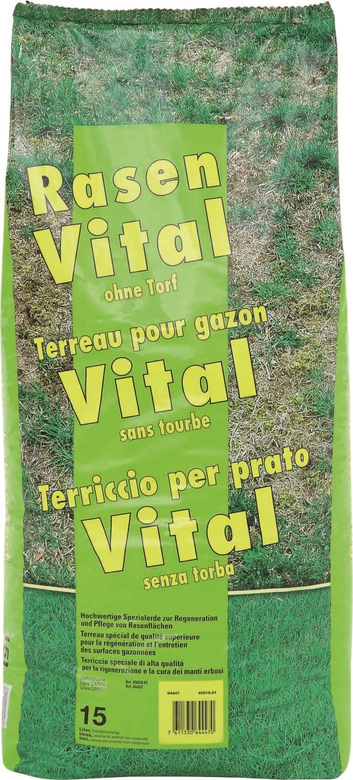 Die Capito Rasen Vital 15 l Erde ist eine hochaktive Erde zum Ausbessern von Kahl- und Schadstellen, zur Vitalisierung der Rasenfläche, zur Rasenpflege und Moosunterdrückung. Sie sorgt für einen grünen und gesunden Rasen.