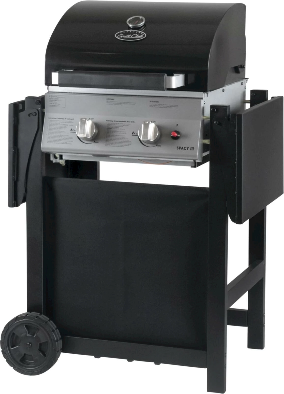 Der Gasgrill Spacy von Grill Club ist der kompakte und praktische Grill, wo überall einen geeigneten Standort im Garten, auf der Terrasse oder dem Balkon findet. Er bietet ausreichend Platz für das Grillgut bis zu 8 Personen und verfügt über zwei hochwertige Gusseisenbrenner. Zwei weitere praktische Vorteile sind seine klappbaren Seitentablare und die Fettauffangwanne, wo nach vorne zur Reinigung entnommen werden kann. Die Masse betragen 106 × 58 × 106 cm und er ist unmontiert. Die Garantiedauer beträgt 5 Jahre.