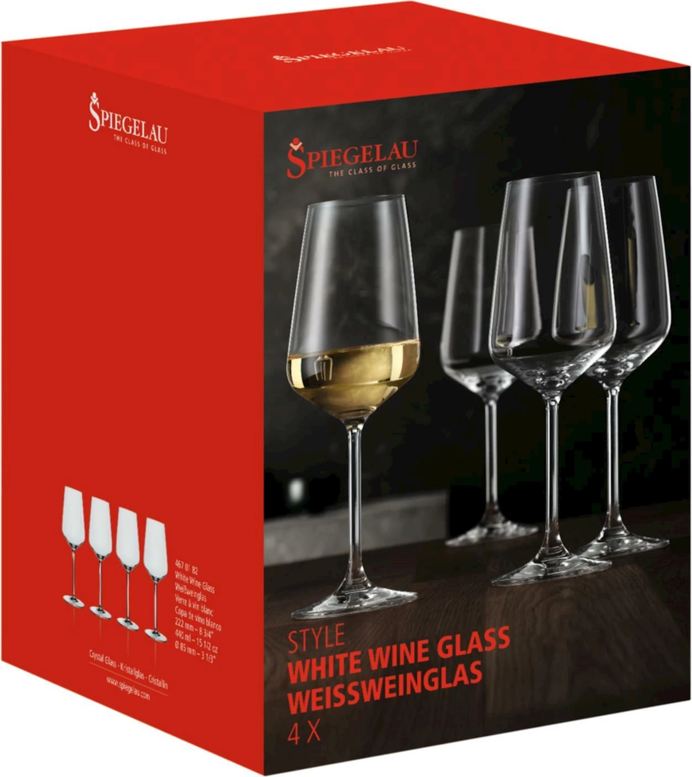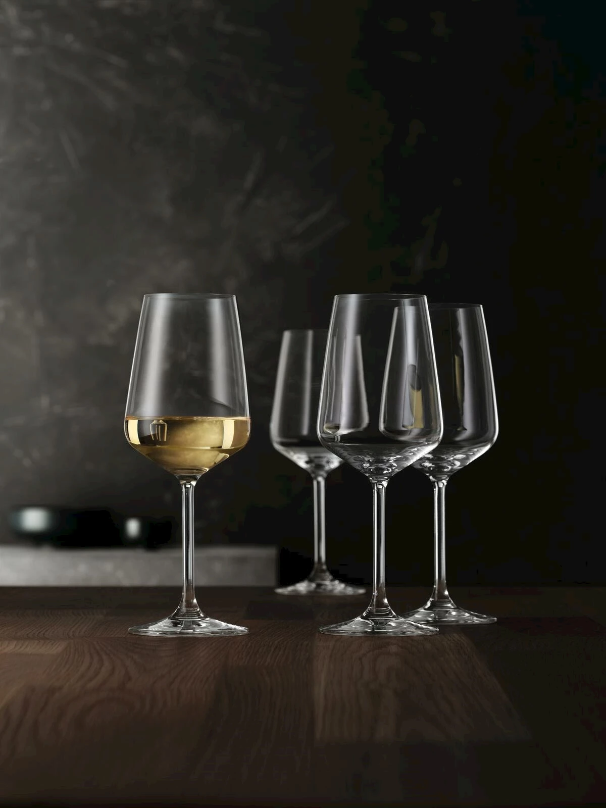 Weissweinglas im 4er-Set aus bleifreiem Kristallglas, 440 ml Volumen, 22.2 cm hoch, 8.5 cm Durchmesser. Spülmaschinengeeigent, ideal für Weisswein.