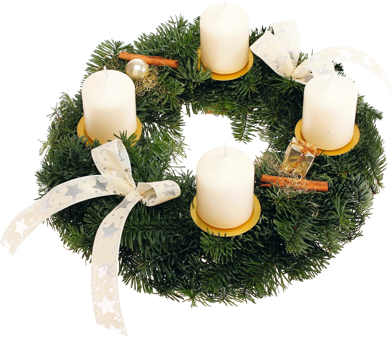 Der Adventskranz in warmen Cremetönen schafft eine gemütliche Atmosphäre und symbolisiert Hoffnung und ewiges Leben. Durchmesser: 27 cm. Ideal für jeden Tisch.