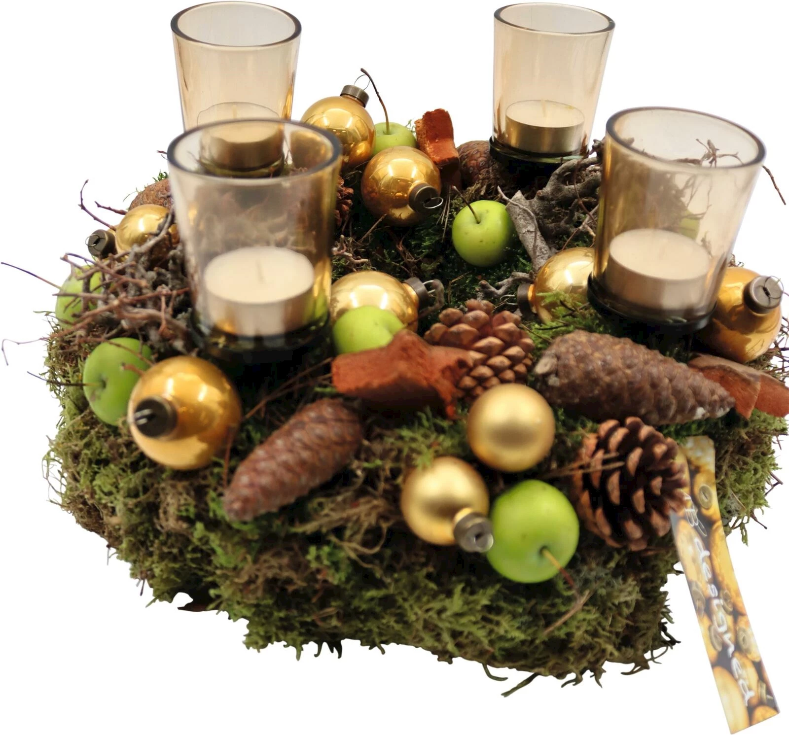 Mit seinem Durchmesser von 35 cm ist dieser Adventskranz perfekt für die Mitte des Tisches geeignet und wird durch seine schlichte, aber elegante Dekoration zu einem echten Blickfang.