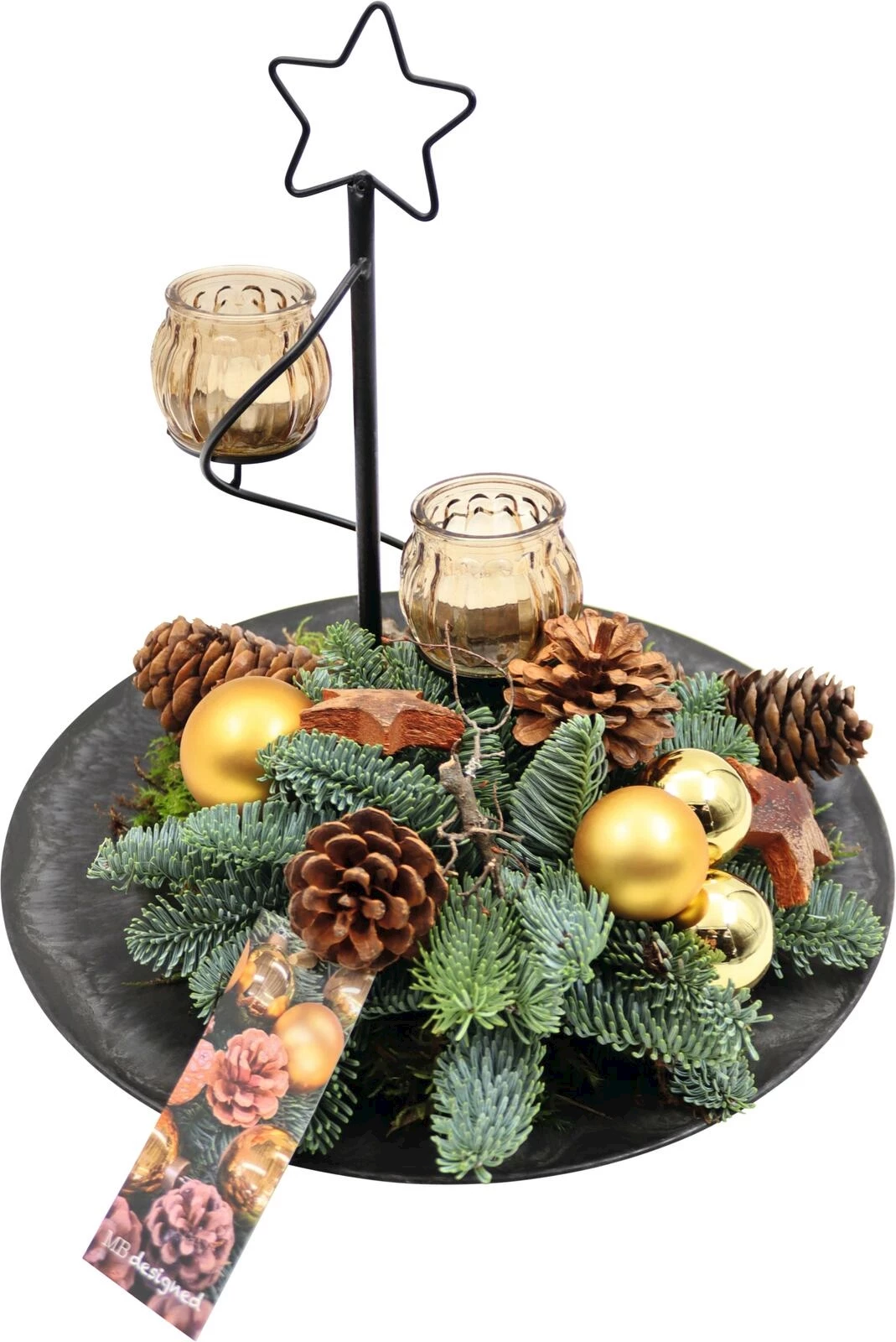 Der dekorative Sternteller hat einen Durchmesser von 33 cm und ist mit natürlichen Materialien und weihnachtlichen Elementen verziert. In der Mitte des Arrangements befindet sich eine Kerze, die sanftes Licht spendet und eine gemütliche, festliche Atmosphäre schafft. Ideal, um die Vorfreude auf Weihnachten zu wecken und dem Wohnraum einen warmen, einladenden Akzent zu verleihen.