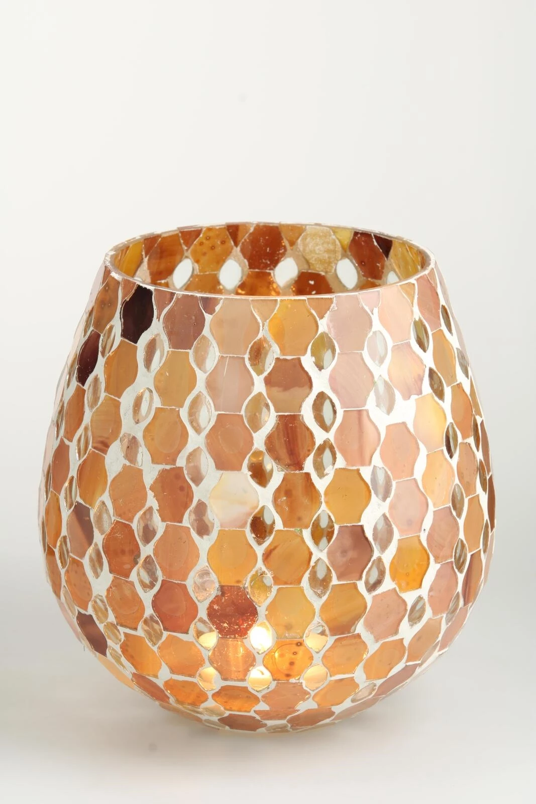 Windlicht in warmen Erdtönen. Die konische Form sorgt für sicheren Stand und lässt das Kerzenlicht abends stimmungsvoll durch die Glasfugen tanzen.