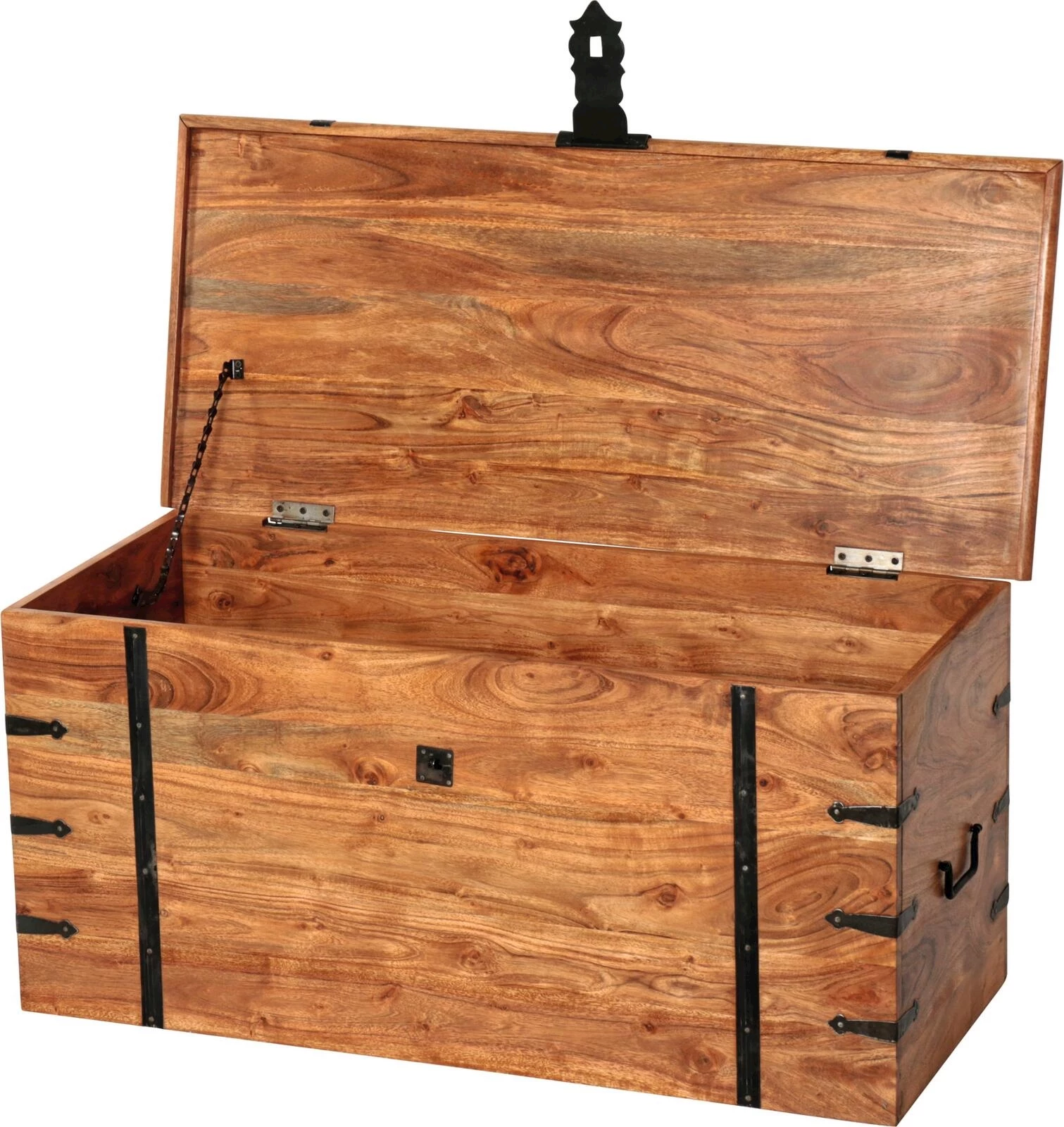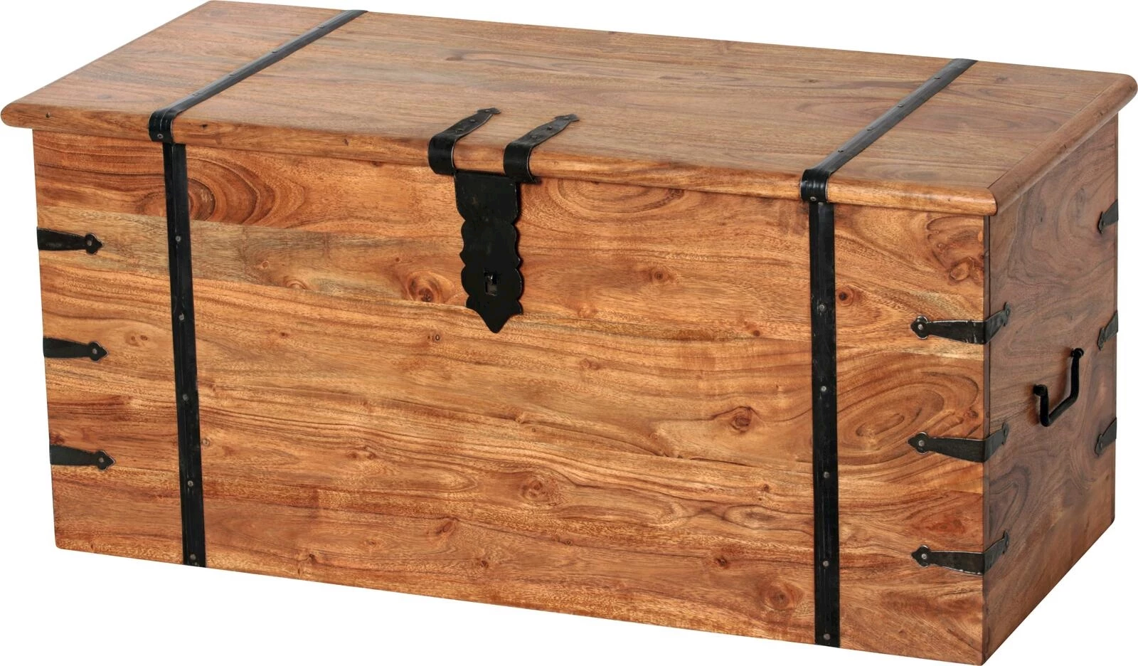 Verstauen Sie Ihren Kleinkram stilvoll in dieser Vintage-Look-Truhe in zeitlosem Design. Für den einwandfreien Transport finden 2 seitlich angebrachte Tragegriffe.