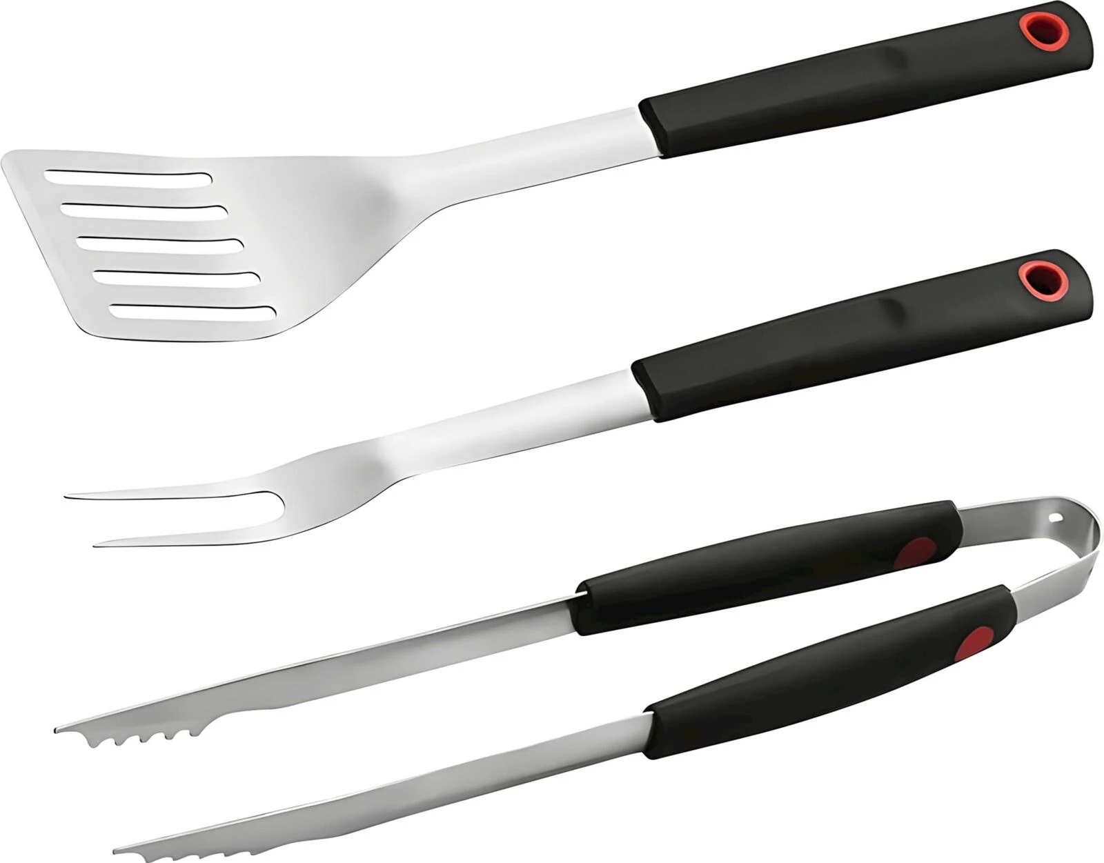 Grill Club. Ideales Zubehör zum Grillieren. Material: Stahl. Handgriff: Polypropylen. Inhalt: Grillzange 40 cm, Wendebräter 43,5 und Grillgabel 40,5 cm.