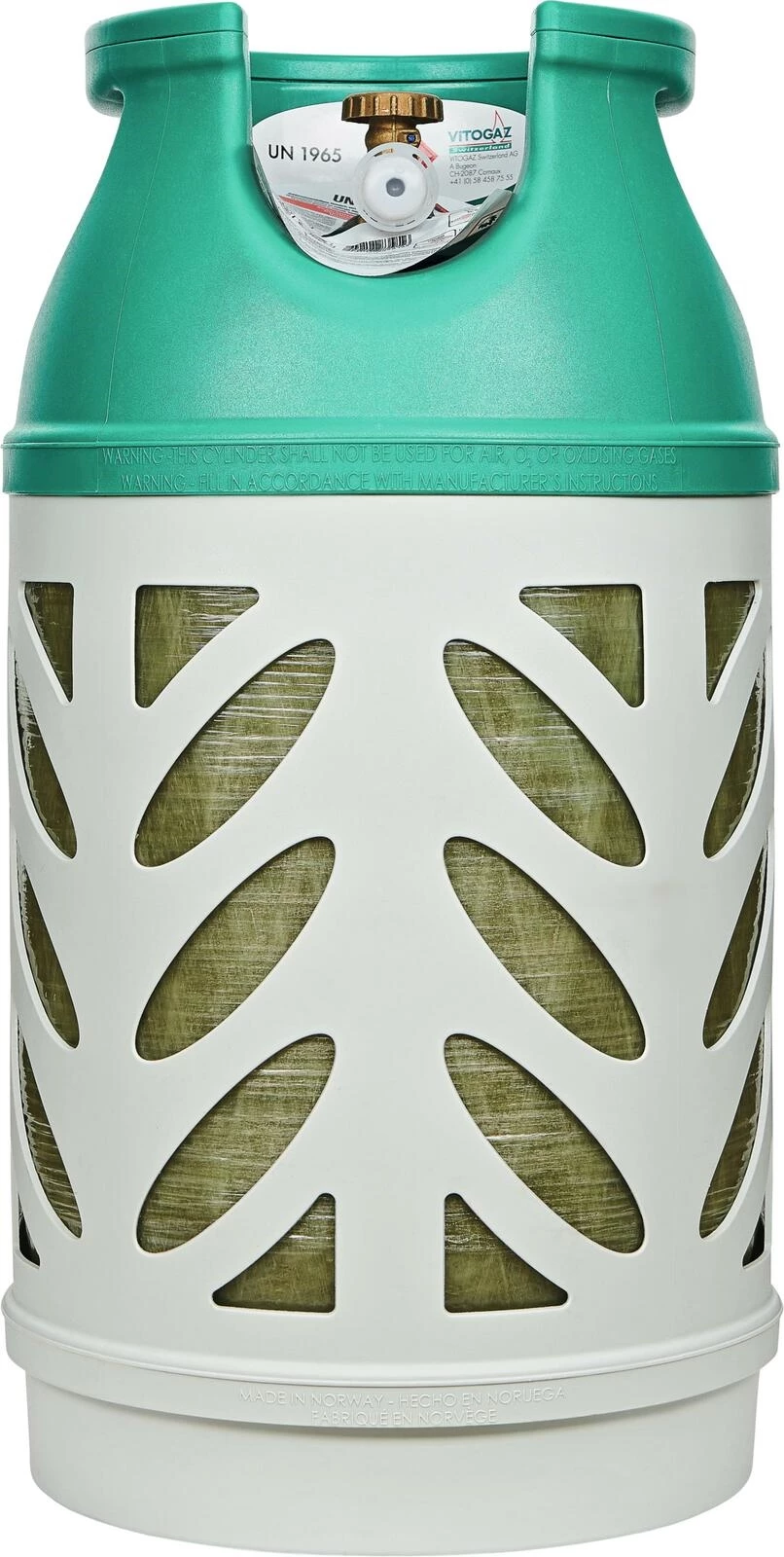 Die Composite-Flasche überzeugt durch ein geringeres Eigengewicht im Vergleich zu herkömmlichen Metallflaschen. Mit einer Grösse von 57 × 30,5 cm und einem Gesamtgewicht von 15,6 kg ist sie handlich und transportfreundlich.