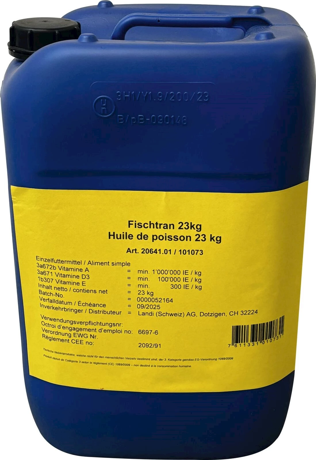 Fischtran ist ein hochwertiges, natürliches Nahrungsergänzungsmittel, das aus dem Öl bestimmter Fischarten gewonnen wird. Es ist besonders reich an wertvollen Omega-3-Fettsäuren, insbesondere EPA und DHA, die eine wichtige Rolle für die Gesundheit von Tieren spielen. Diese Fettsäuren fördern die Gelenkgesundheit, unterstützen die Haut und tragen zur Verbesserung der kognitiven Funktionen bei. Zudem helfen sie, Entzündungen zu reduzieren. Fischtran enthält ausserdem eine Vielzahl wichtiger Vitamine und Mineralstoffe, die das allgemeine Wohlbefinden und die Vitalität von Tieren stärken.