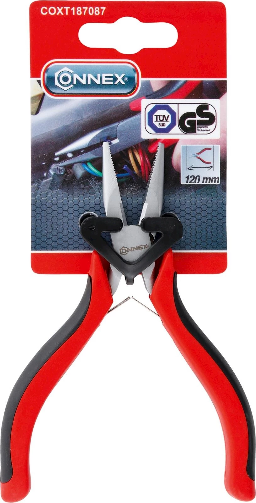 Klassische Spitzzange aus Chrom-Vanadium-Stahl gefertigt mit integrierter Schneide. Für verschiedene Arbeiten an Kabeln geeignet.