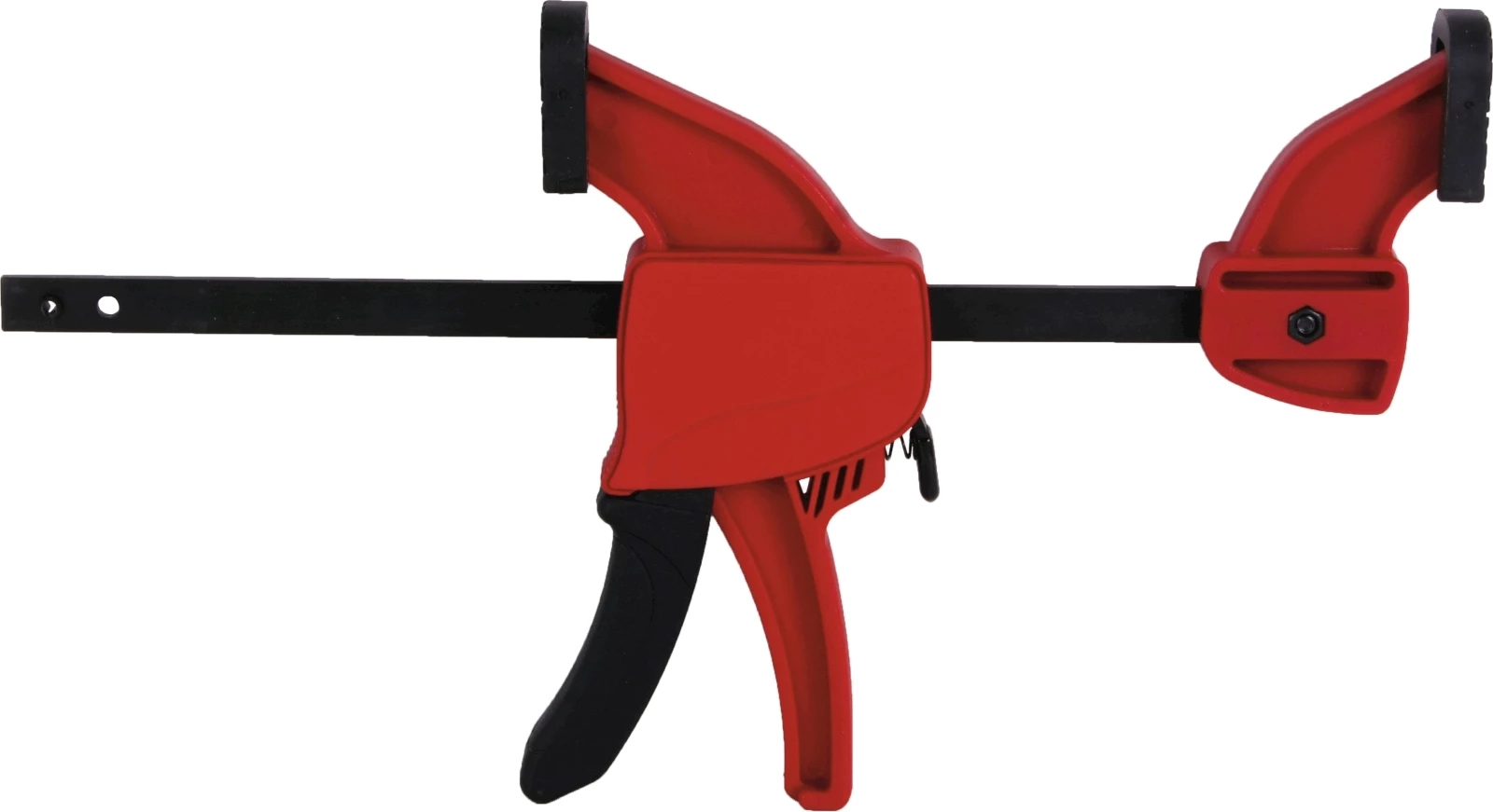 Kleine Spannzwingen um Werkstücke einer geringeren Grösse zu fixieren. Die Zwingen sind in roter Optik gehalten und bieten eine Spannweite von 15 cm.