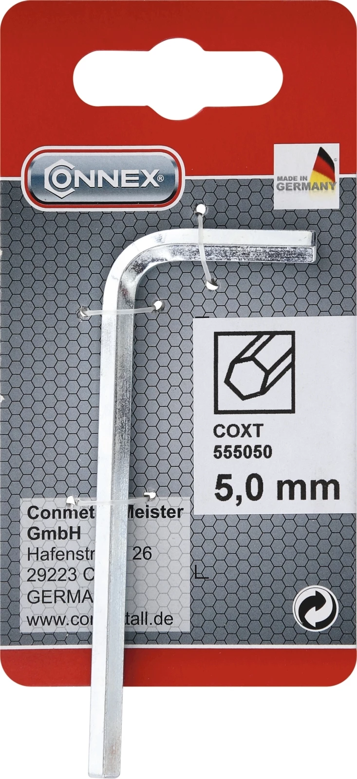 Sechskant. Aus CV-Stahl. Chromatisiert. Grösse: 5 mm.