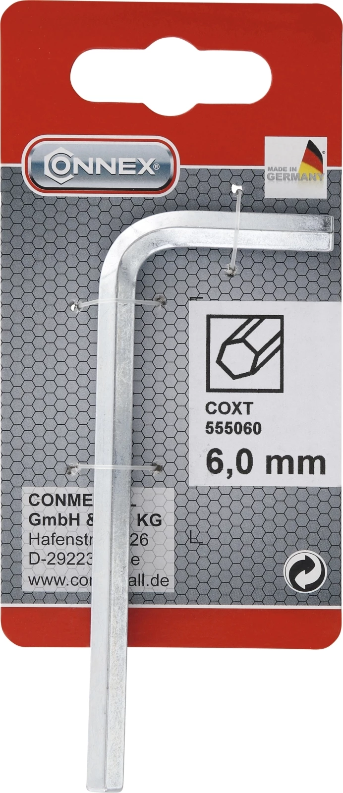 Sechskant. Aus CV-Stahl. Chromatisiert. Grösse: 6 mm.