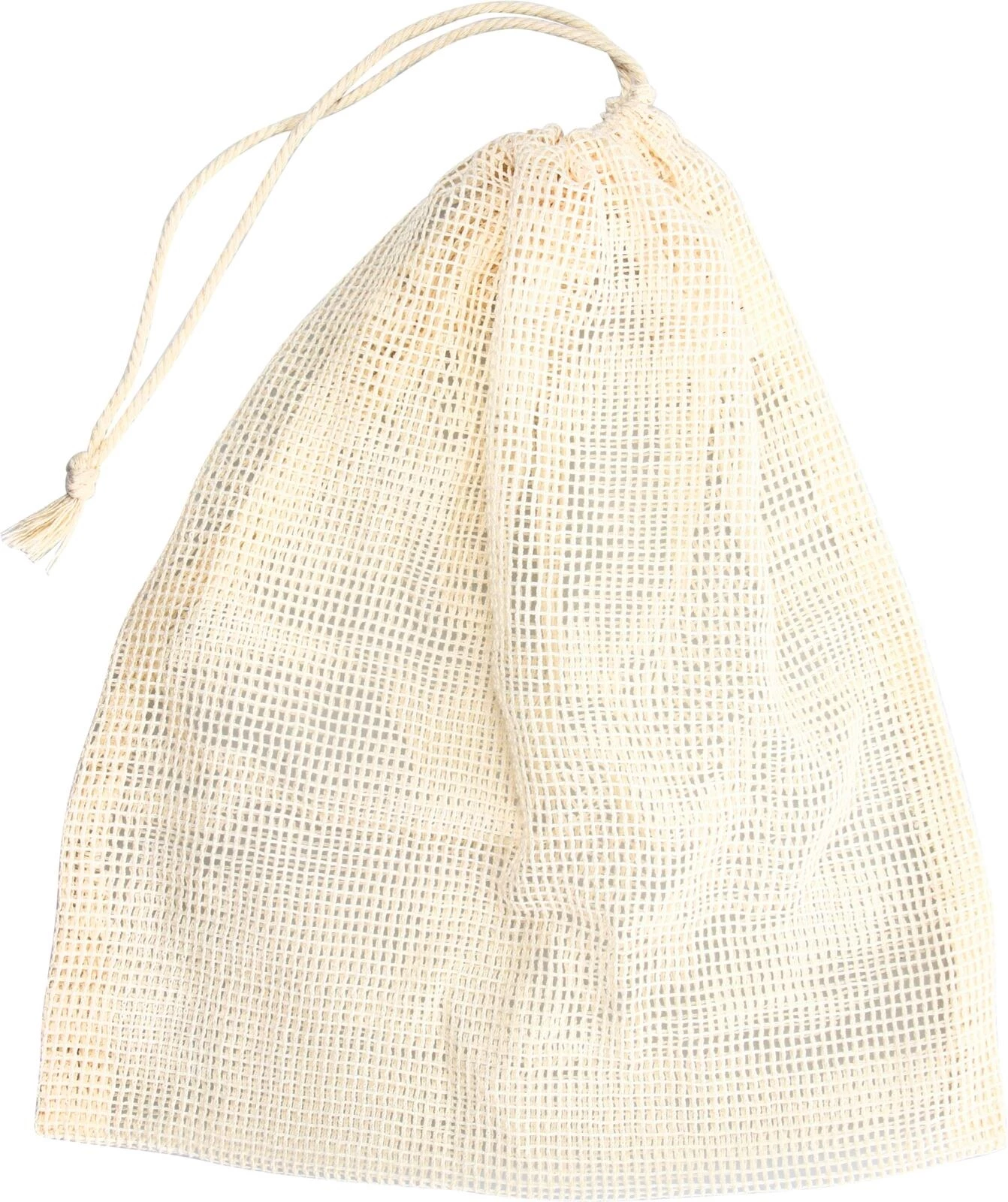 Der praktische Obst- und Gemüsebeutel ist aus 100 % Bio-Baumwolle. Er kann bei jedem Einkauf wiederverwendet werden und so kann auf die Plastiksäcke verzichtet werden. Der Beutel kann mit 3 – 4 kg befüllt werden, der Beutel selber ist lediglich 18 g. Er kann gelegentlich per Handwäsche gewaschen werden. Masse: 25 × 30 cm.