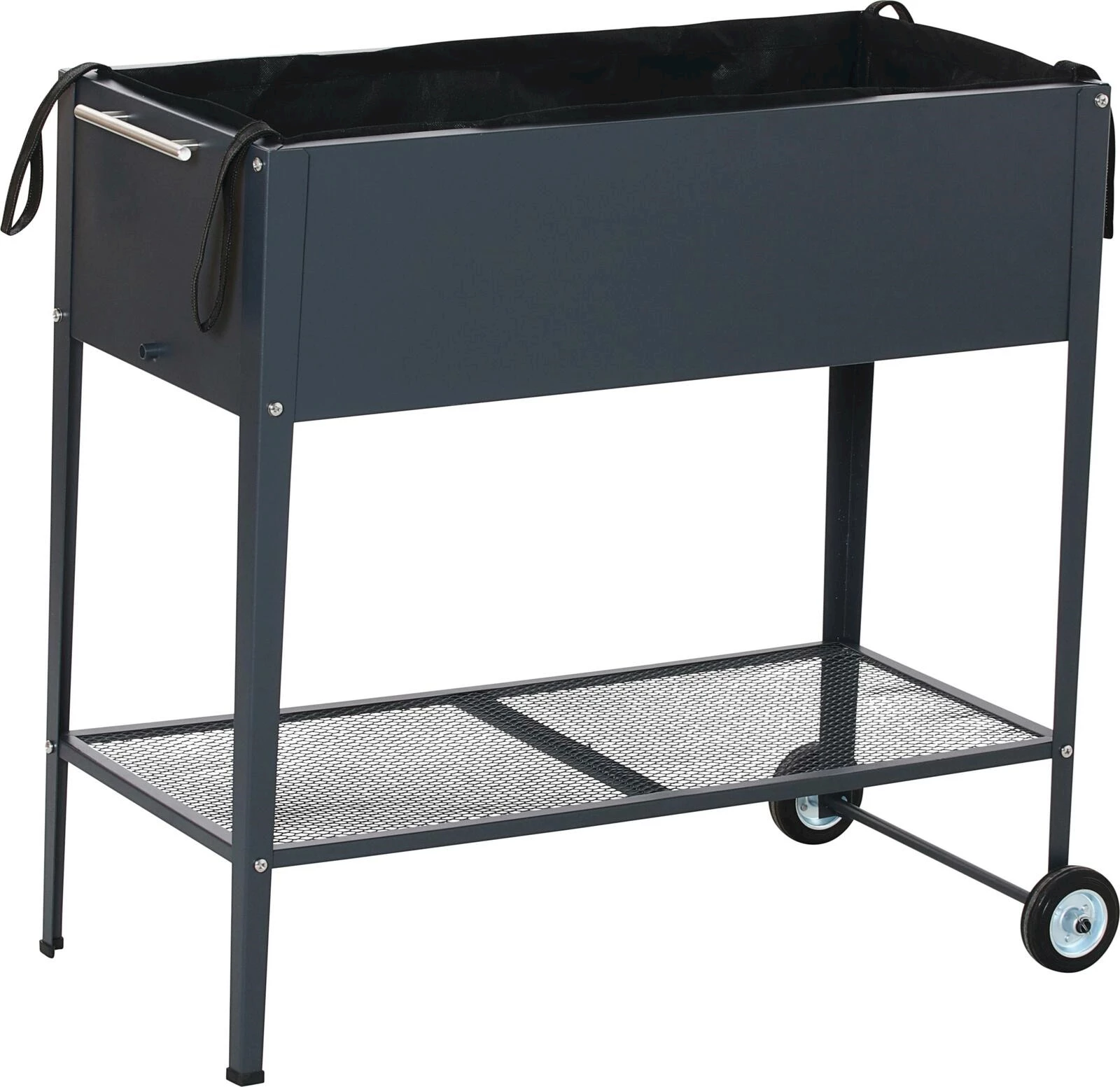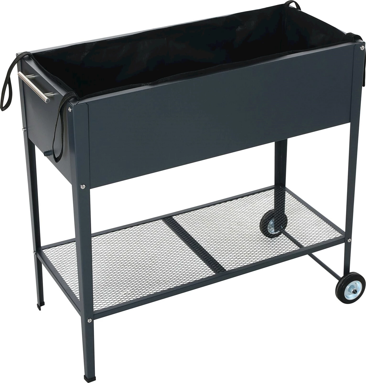 Für Balkon- und Terrassengarten geeignet. Aus robustem, kaltgewalztem Stahl. Inkl. Textileinlage und Styropor. Mit Griff. Pflanztiefe: 20 cm. Füllvolumen: Ca. 70 l.