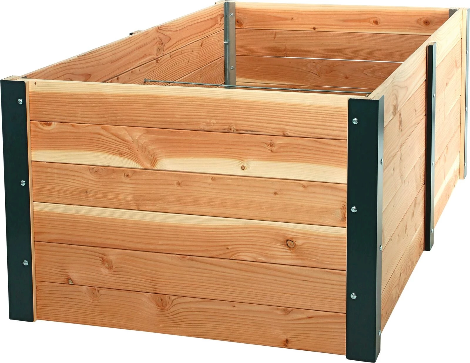 Für den Anbau von Kräutern, Gemüse oder Pflanzen. Elementbauweise. Füllmenge: 1600 l. Holzart: Douglasie. Brettstärke: 20 mm. Stärke Verbindungsbleche: 1 mm. Inkl. Folie.
