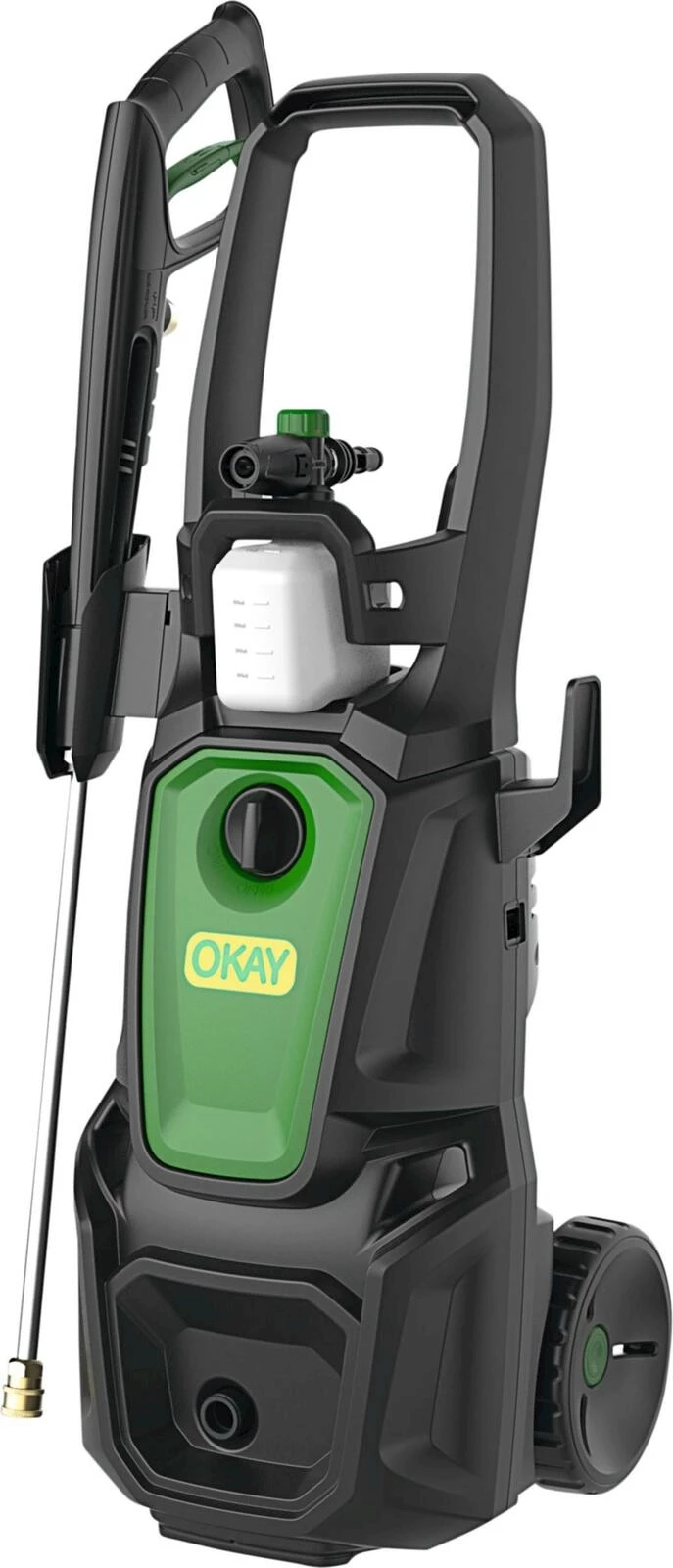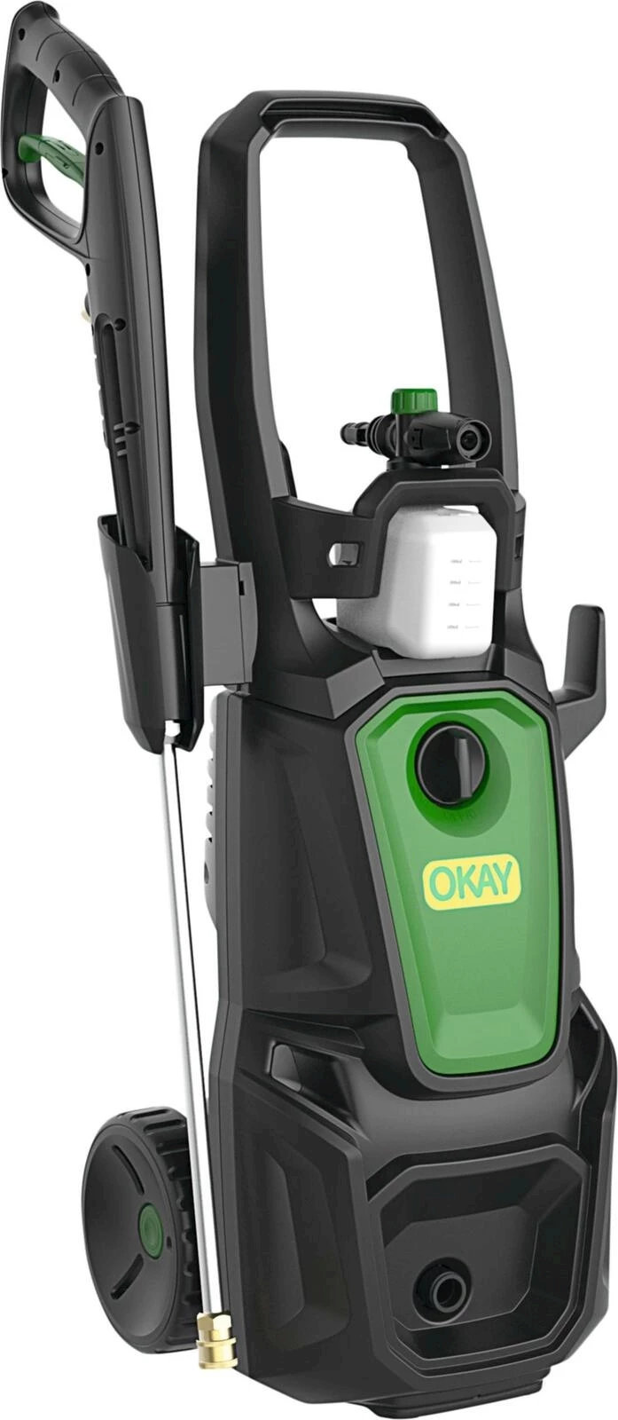 Der leistungsstarke Hochdruckreiniger von Okay überzeugt mit seiner starken Reinigungsleistung für eine gründliche Reinigung Ihrer Oberflächen. Der Hochdruckreiniger ist mit einem Netzkabel von 5 m Länge sowie einem Hochdruckschlauch von 10 m ausgestattet, was Ihnen eine optimale Reichweite ermöglicht. Dank seiner grossen Räder ist er zudem äusserst mobil und einfach zu manövrieren, selbst auf unebenem Untergrund. Die integrierte Schlauchhaspel mit Handgriff macht das Handling besonders komfortabel, während der Schaumerzeuger und die 4 mitgelieferten Düsen Ihnen vielseitige Einsatzmöglichkeiten bieten. Mit der Automatik-Start-/Stopp-Funktion wird der Stromverbrauch sowie der Verschleiss reduziert.