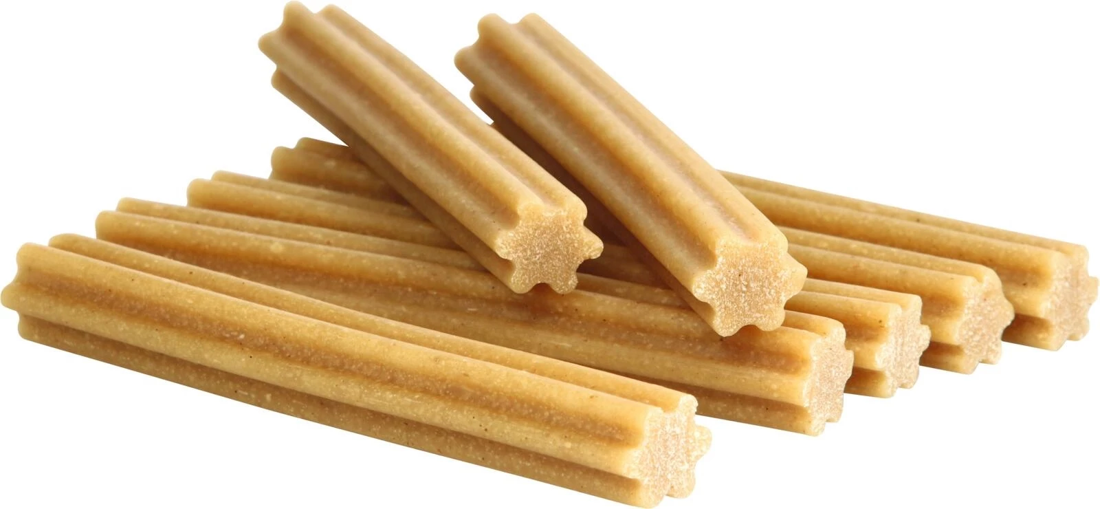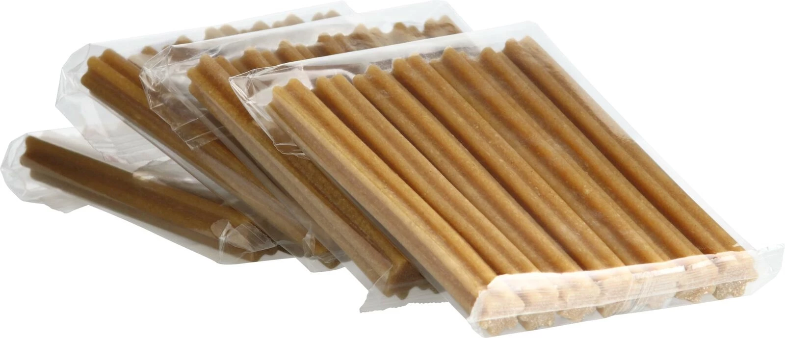Die Dental Sticks von bitsdog sind ein Ergänzungsfuttermittel für alle Hunde. Sie bestehen aus Getreide, pflanzlichen Nebenerzeugnissen, Fleisch, tierischen Nebenerzeugnissen und Mineralstoffe. Der Snack eignet sich ideal zur Gebissreinigung und -Stärkung Ihres Vierbeiners und er kann sich damit beschäftigen. In einer Packung befinden sich 28 Stück der leckeren Hundesticks.