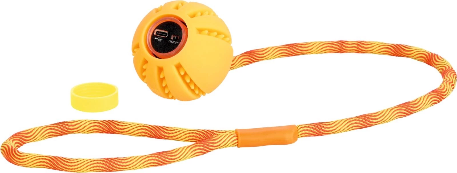 Der Ball lässt sich ganz einfach über das mitgelieferte USB-Kabel wieder aufladen, sodass keine Batterien benötigt werden. Die praktische Schnur macht das Werfen besonders leicht und sorgt für zusätzliche Abwechslung beim gemeinsamen Spielen.