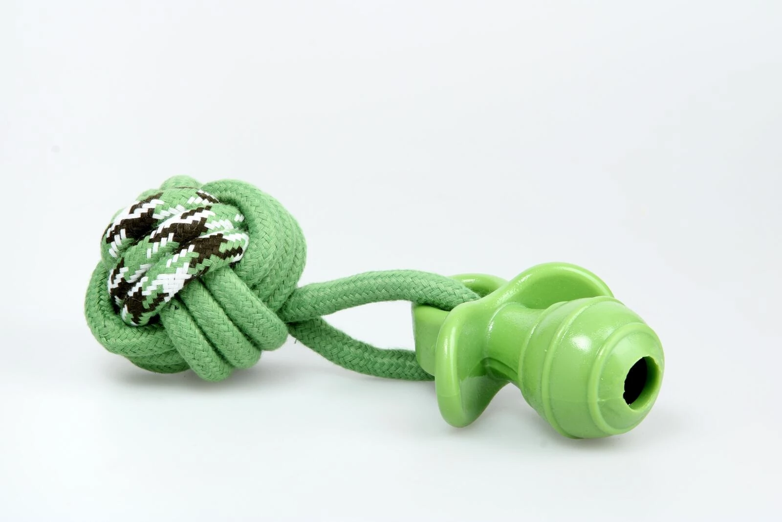 Dieses strapazierfähige Hundespielzeug von bitsdog sorgt für abwechslungsreichen Spielspass. Das robuste Kauspielzeug besteht aus einer Kombination aus festem Seil und widerstandsfähigem Kunststoff, was es besonders langlebig macht.