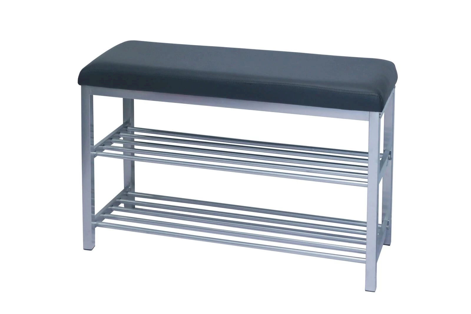 Das elegante Möbelstück ist ideal geeignet für Eingangsbereiche und Garderoben. Die Bank hat eine gepolsterte Sitzfläche aus Kunstleder, auf den darunterliegenden zwei Abstellmöglichkeiten aus Metall können Schuhe ordentlich verstaut werden. Praktisch, wenn man zum An- und Ausziehen der Schuhe bequem sitzen kann und die passenden Schuhe gleich in Reichweite sind oder versorgt werden können. Die Tragkraft der robusten Sitzbank liegt bei max. 150 kg. Unmontiert.