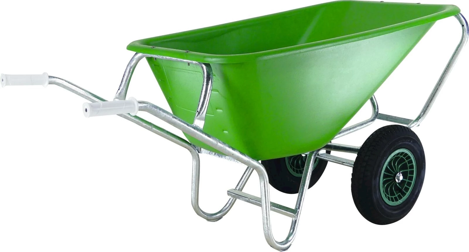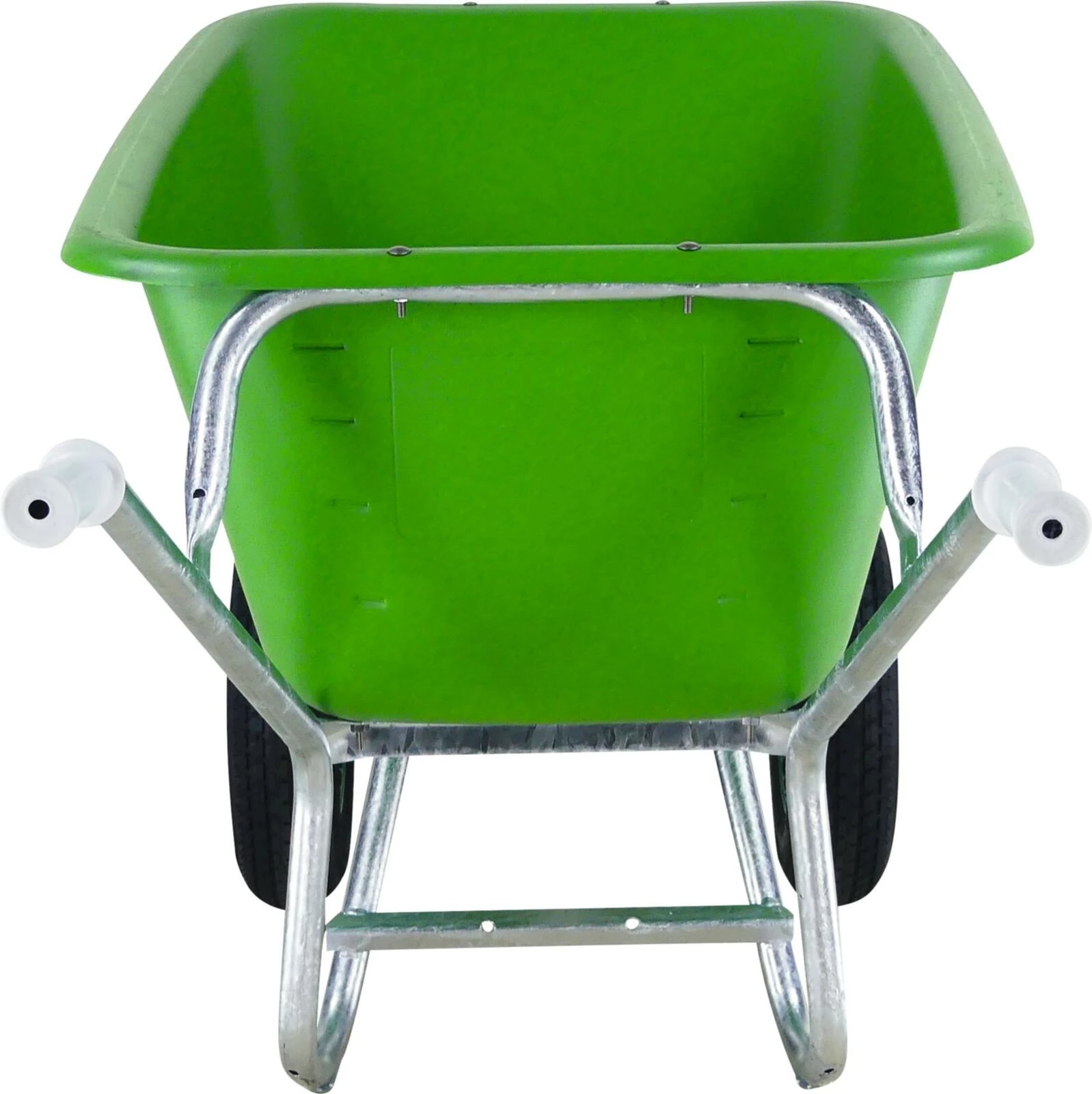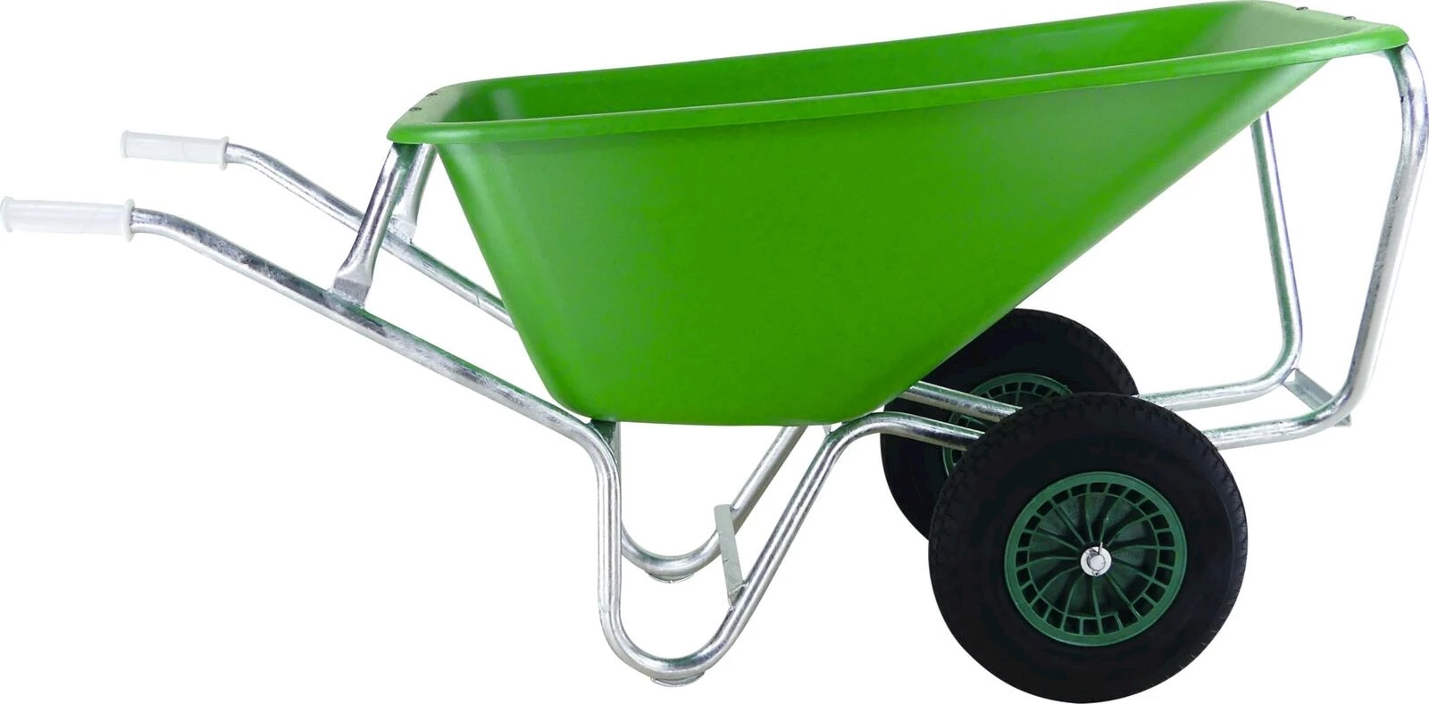 Ein praktischer Zweirad-Muldenkipper mit einer grosszügigen Kapazität von 165 Litern. Seine Innenfläche ist durch eine glatte Vakuumformung geprägt. Der Rahmen besteht aus verzinktem Material und der Kipper selbst ist aus äusserst robustem HDPE-Kunststoff gefertigt, der eine gleichmässige Wandstärke aufweist. Zusätzlich verfügt der Muldenkipper über einen praktischen Kippbügel, der das Entleeren des Inhalts erleichtert.