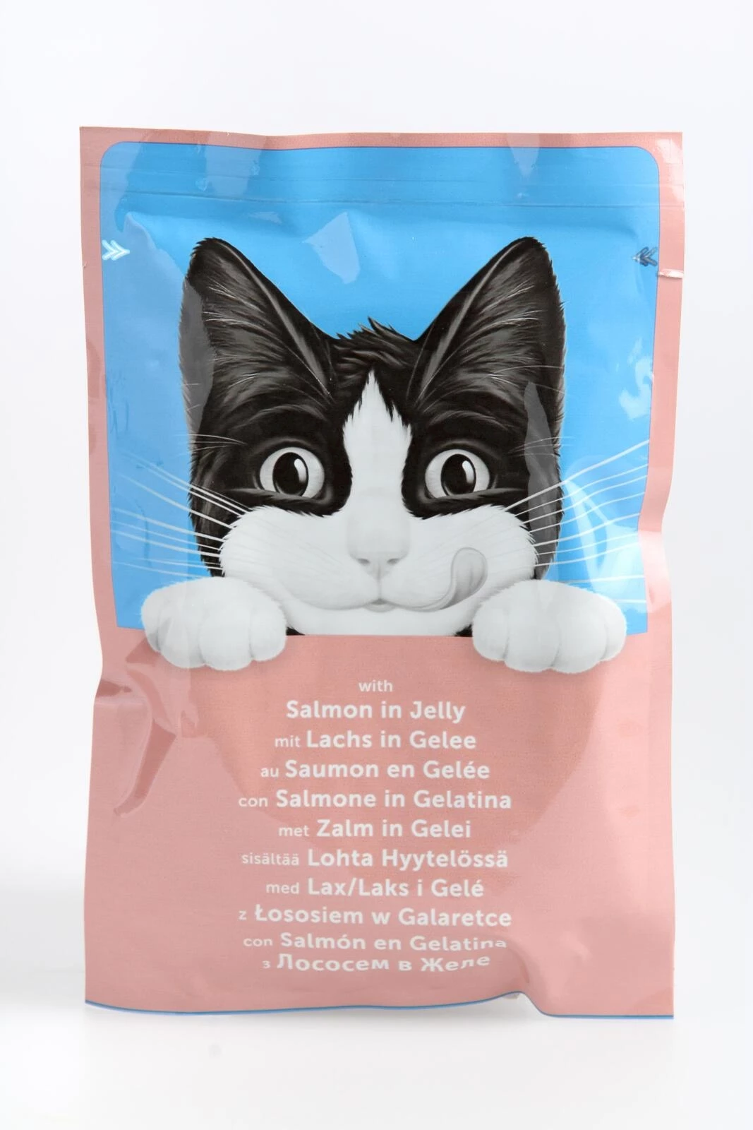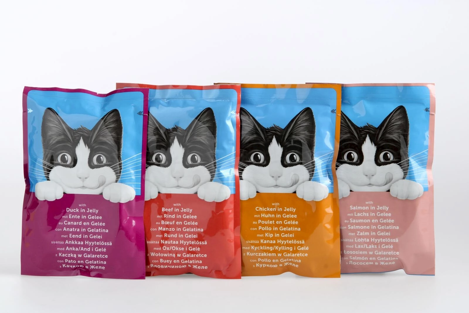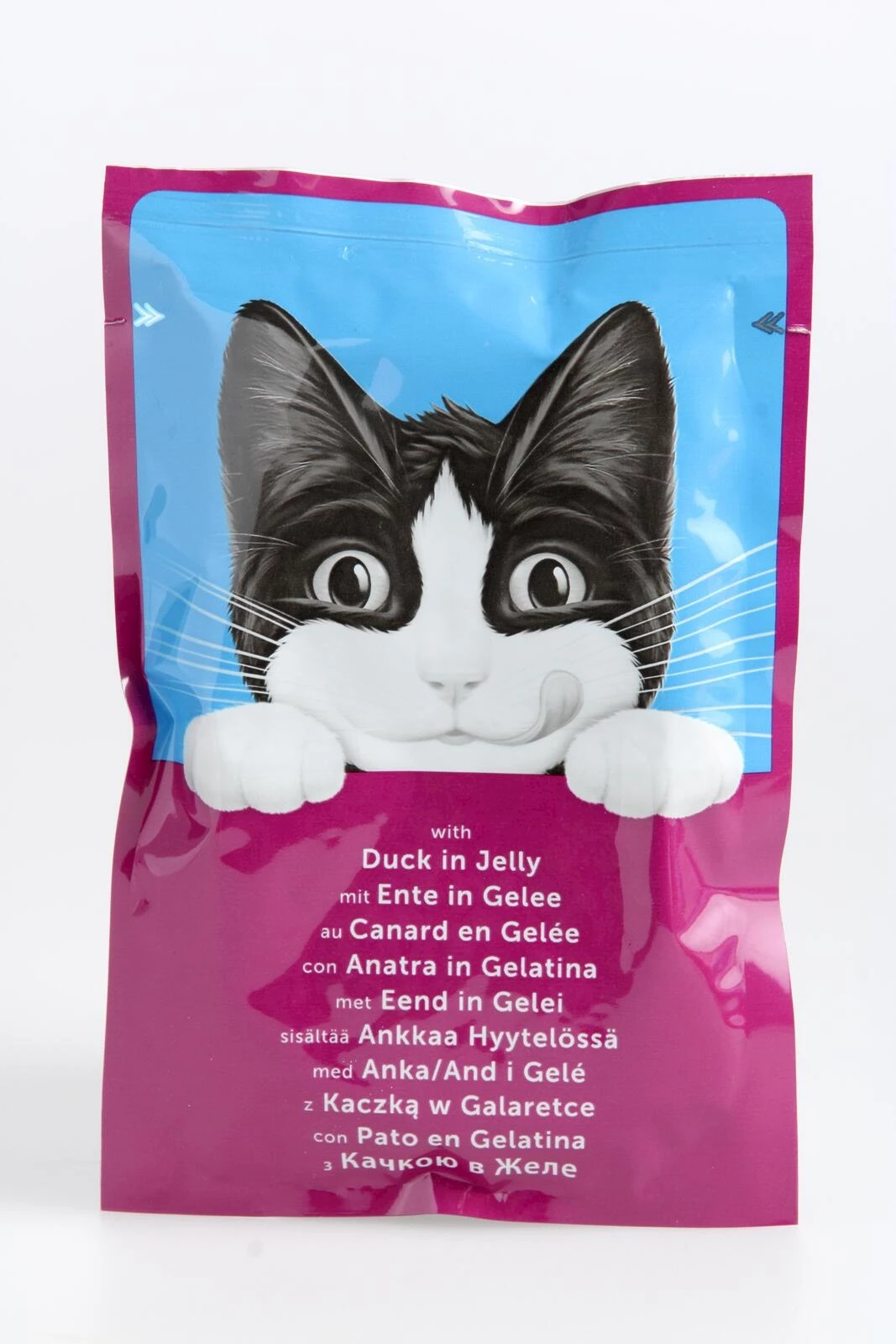 Alleinfuttermittel für ausgewachsene Katzen. Enthält wichtige Vitamine. Mit Huhn, Ente, Lachs und Rind.