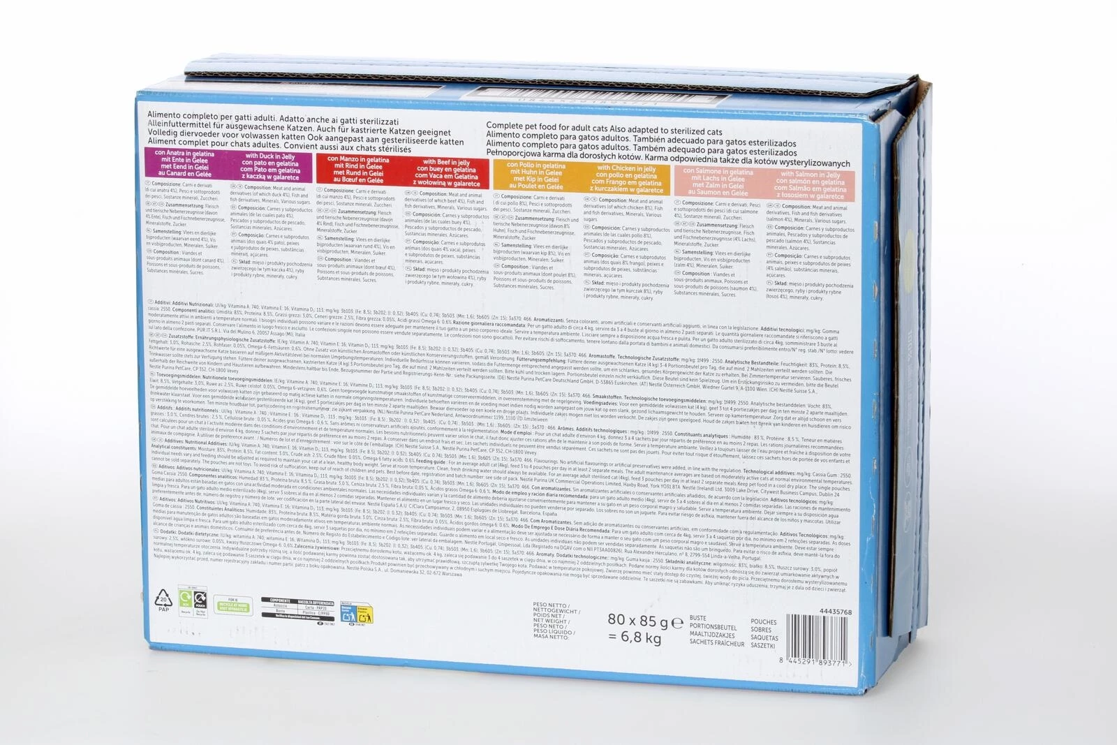 Grosspackung mit 80 Futterbeuteln à je 85 g ist ideal für Halter von mehreren Katzen und zur Bevorratung. Das Nassfutter in Geleé von Felix ist für ausgewachsene Katzen geeignet. Es enthält je 20 Beutel mit Ente, Rind, Huhn und Lachs. Beutel mit verschiedenen Geflügelsorten: