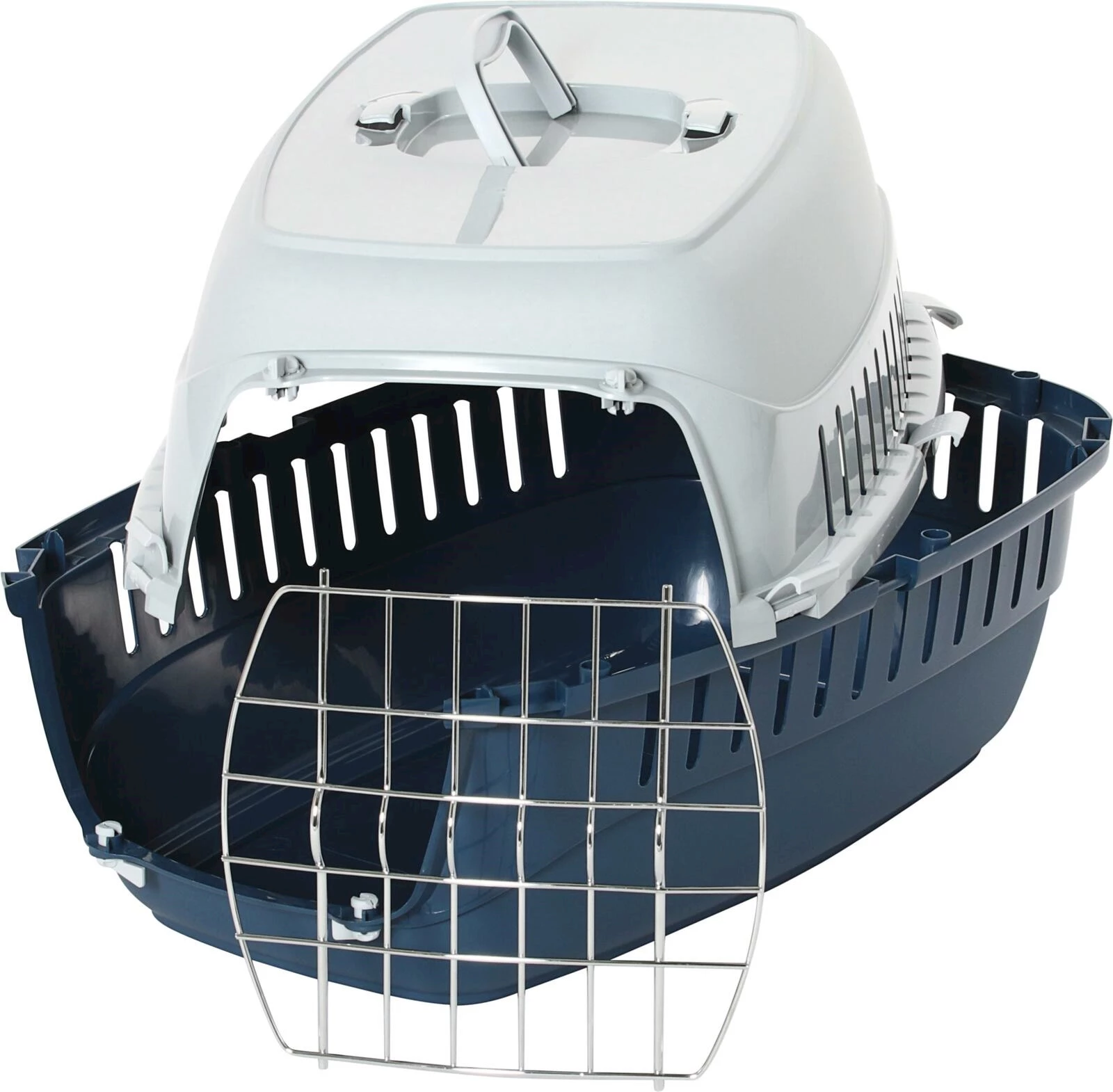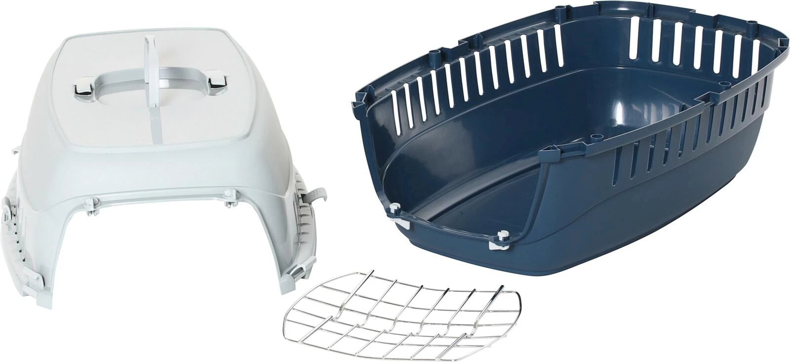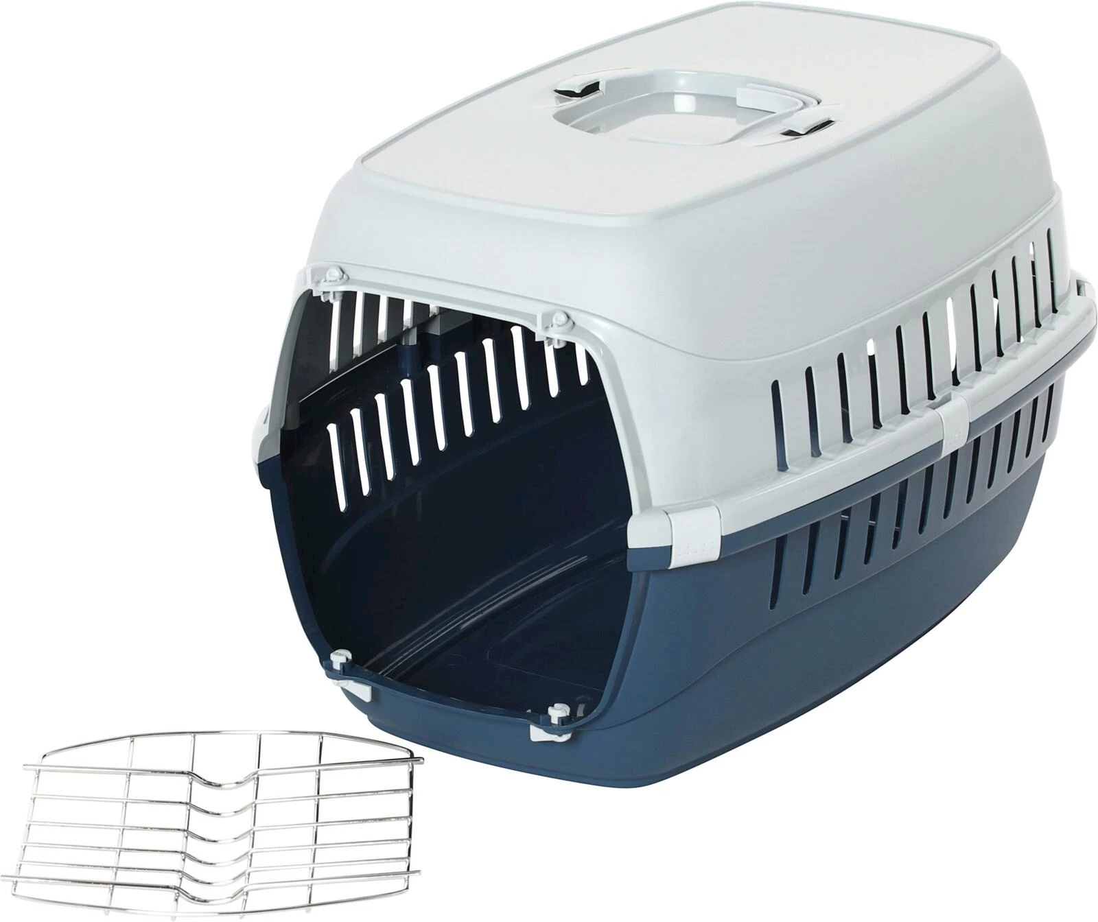 Die praktische und vielseitige bitscat Transportbox ist für Katzen und kleinere Hunde geeignet. Sie beinhaltet seitliche Schlitze für die korrekte Luftzufuhr, eine von aussen mit Schnappverschluss schliessbare Metaltür und einen ergonomischen Griff. Die Box bietet dem Tier einen absoluten Schutz. Zudem ist sie leicht zu montieren und zu reinigen Farbe: dunkelblau/hellgrau.