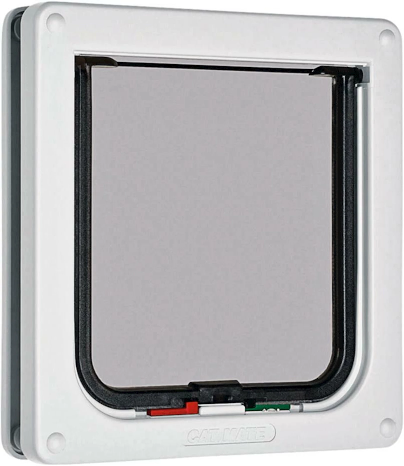 Die weisse Katzentüre CatMate aus Kunststoff eignet sich für den einfachen Einbau bei dünnen Paneelen. Sie ist vor Manipulationen mit einer Schiebeverriegelung gesichert und mit einer robusten, transparenteren Polymerklappe ausgestattet. Zudem verfügt sie über eine luftzugsichere, wetterfeste Abdichtung sowie einen Magnetverschluss. Die Aussenmasse der Katzentüre sind 19,2 × 20 cm und die Tür-Ausschnittmasse betragen 16,5 × 17,4 cm.