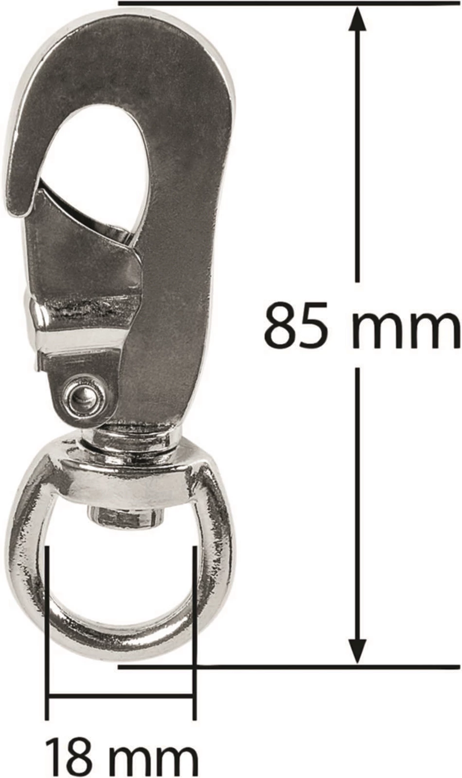 Der vernickelte Karabinerhaken (85 mm) ist korrosionsbeständig, langlebig und bietet eine schnelle Befestigung. Ideal für Outdoor, Sport, Haushalt und Arbeit.