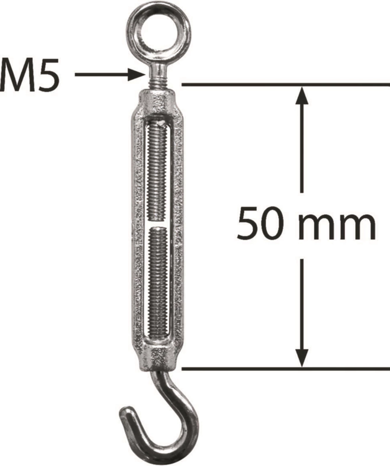 Grössen: M5 × 50 mm, Belastbarkeit: max. 20 kg / M6 × 85 mm, Belastbarkeit: max. 45 kg / M8 × 110 mm, Belastbarkeit: max. 95 kg.
