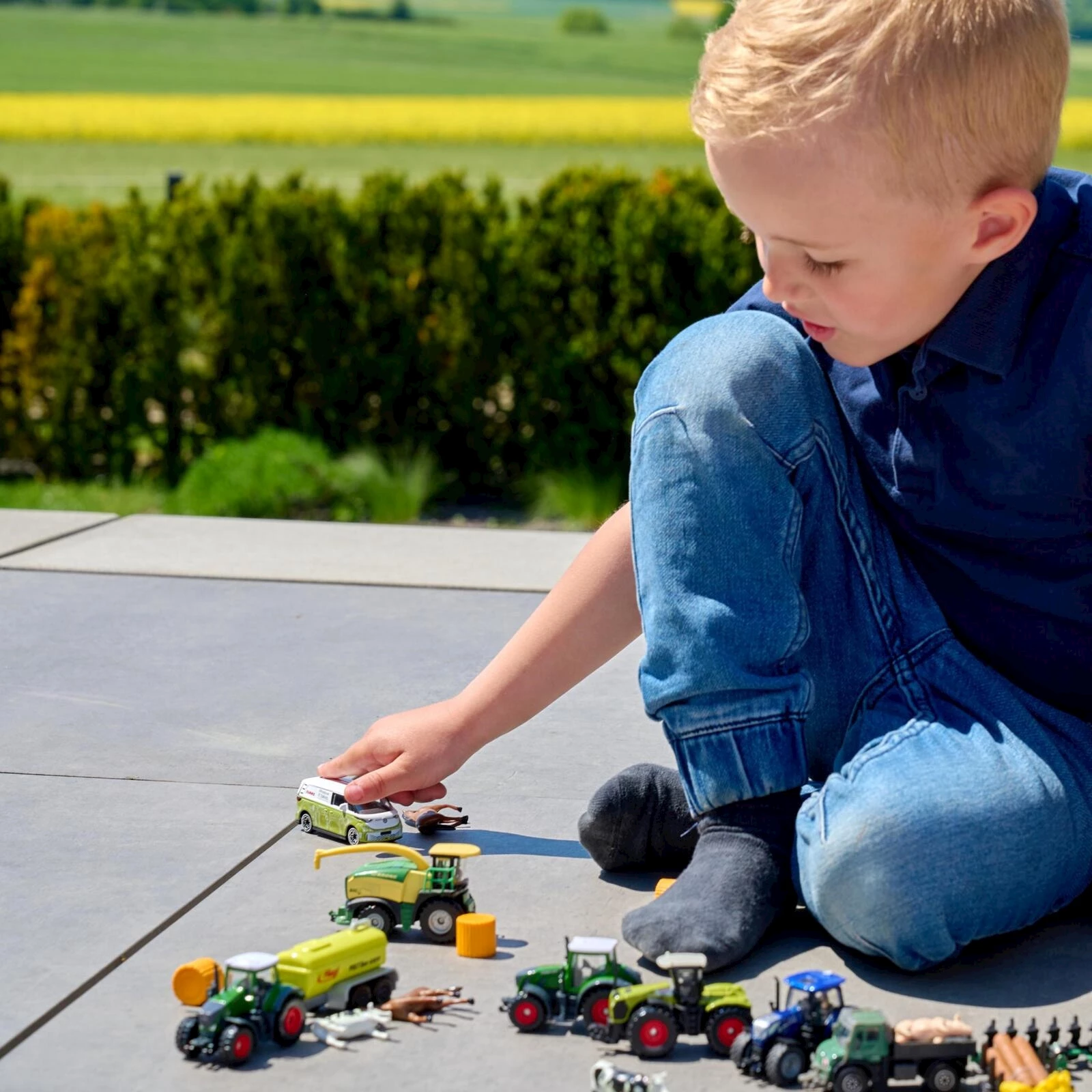 Diese farbenfrohen Spielzeug-Fahrzeuge bringen jede Menge Abwechslung ins Kinderzimmer und lassen die Herzen kleiner Fahrzeugfans höherschlagen. Sechs verschiedene Fahrzeuge, darunter detailreiche Traktoren und robuste Lastwagen, die zum Nachspielen spannender Alltagsszenen einladen. Mit einer Länge von jeweils 15,5 cm sind die Fahrzeuge handlich und gross genug für ausgiebige Abenteuer, egal ob drinnen oder draussen.