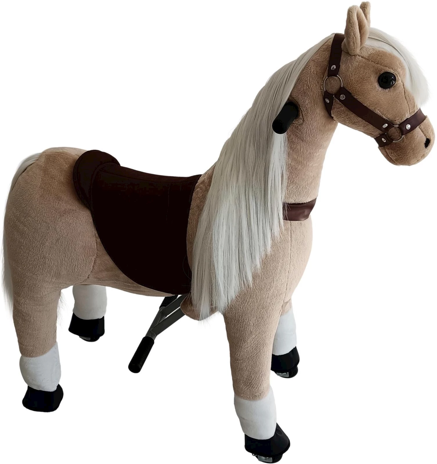 Für einen sicheren und komfortablen Sitz sorgen der gepolsterte Sattel, die integrierten Steigbügel sowie gut erreichbare Handgriffe. Kinder lernen spielerisch, ihr Gleichgewicht zu halten und ihre Koordination zu verbessern. Ob fantasievolle Ausritte oder einfaches Herumreiten, dieses Spielpferd lädt zu stundenlangem, aktivem Spiel ein.