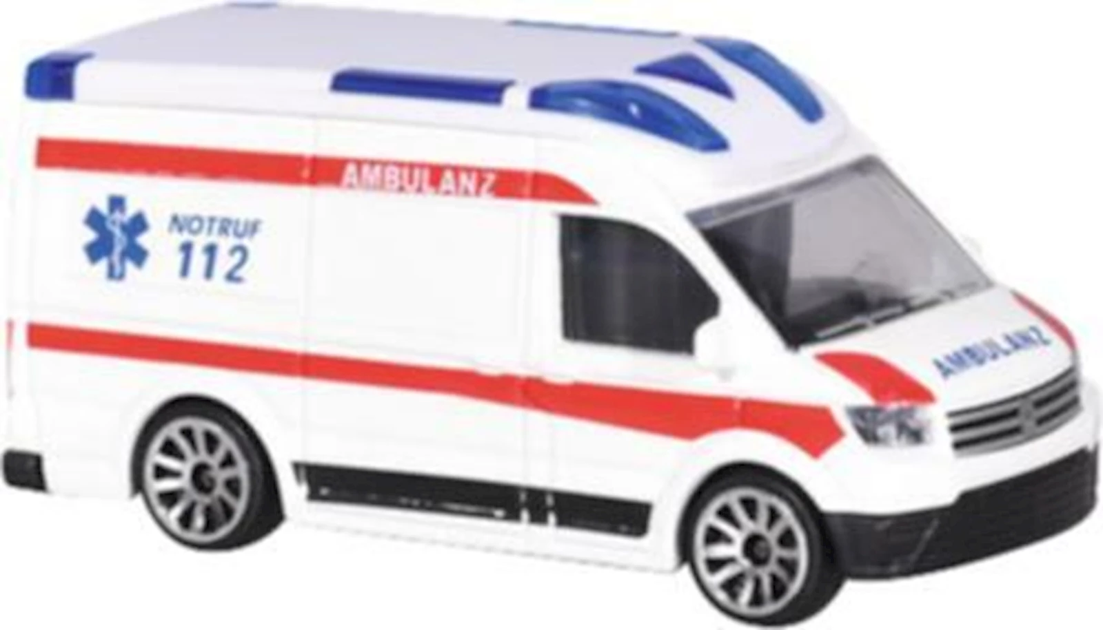 Bei diesem Produkt sind sechs verschiedene SOS-Fahrzeuge verfügbar. Die Spielzeugautos sind für Kinder ab drei Jahren geeignet und bestehen aus Metall und Kunststoff. Zum Teil sind die Elemente beweglich und verfügen über eine Federung. Die Spielzeugautos haben einen Freilauf und ist in verschiedenen Modellvarianten wie MAN, VW, Porsche und Mercedes-Benz erhältlich. Das Gewicht pro Fahrzeug beträgt 58 g und alle haben eine Grösse von 15,5 × 10,5 × 4,5 cm.