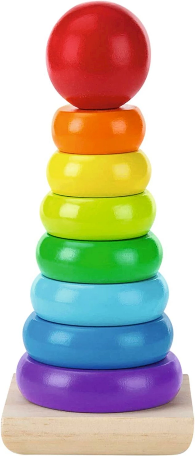 Diese Holzringe können auf verschiedene Arten gestapelt werden um Ihrem Kind eine angenehme Spielzeit zu ermöglichen. Sie helfen dabei die feinmotorischen Fähigkeiten, das kognitive Denken und die visuellen Fähigkeiten zu lehren und zu entwickeln. Die Holzringe sind für Kinder ab 18 Monaten geeignet. Die Masse betragen 9 × 9 × 21,5 cm.