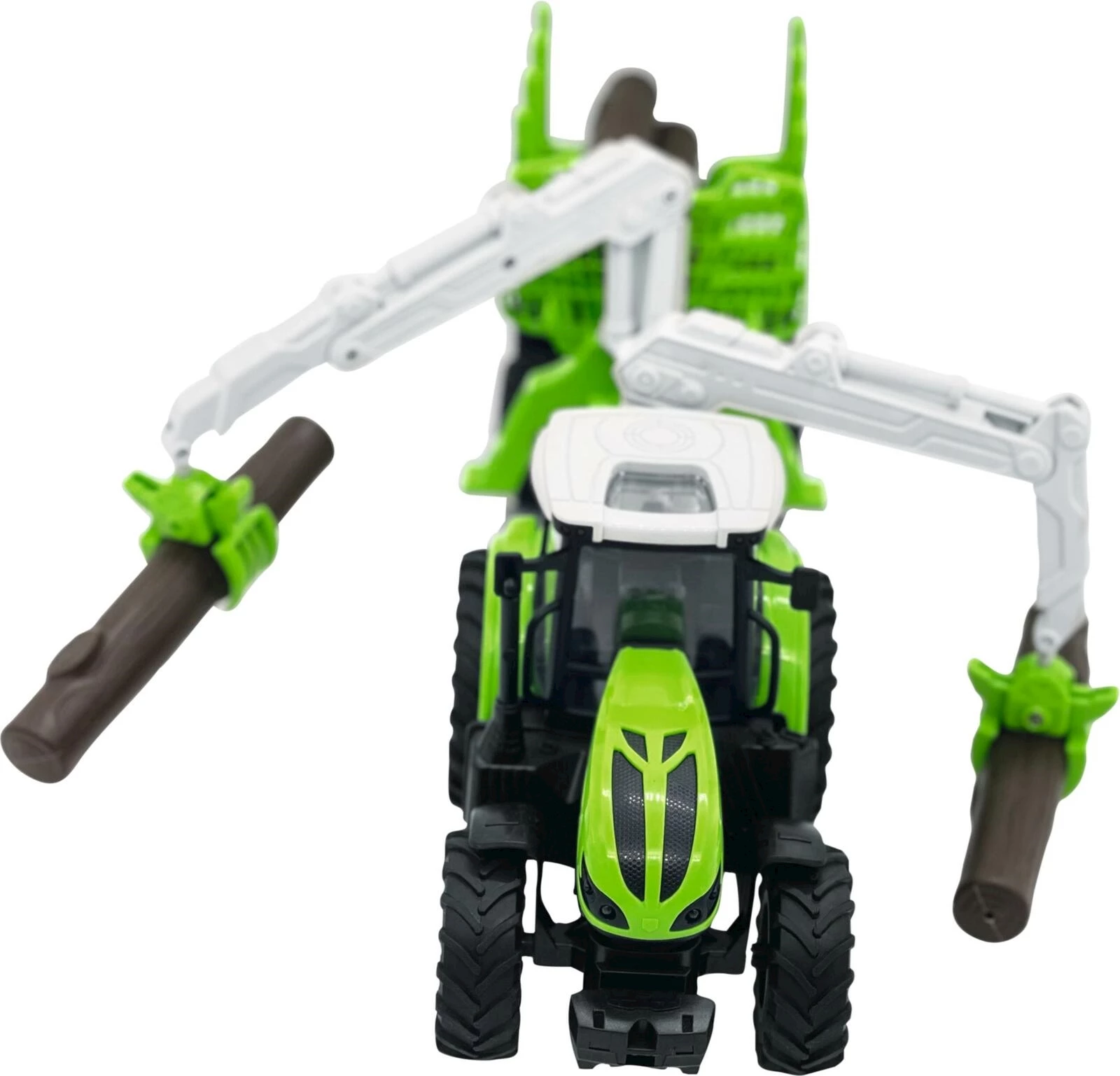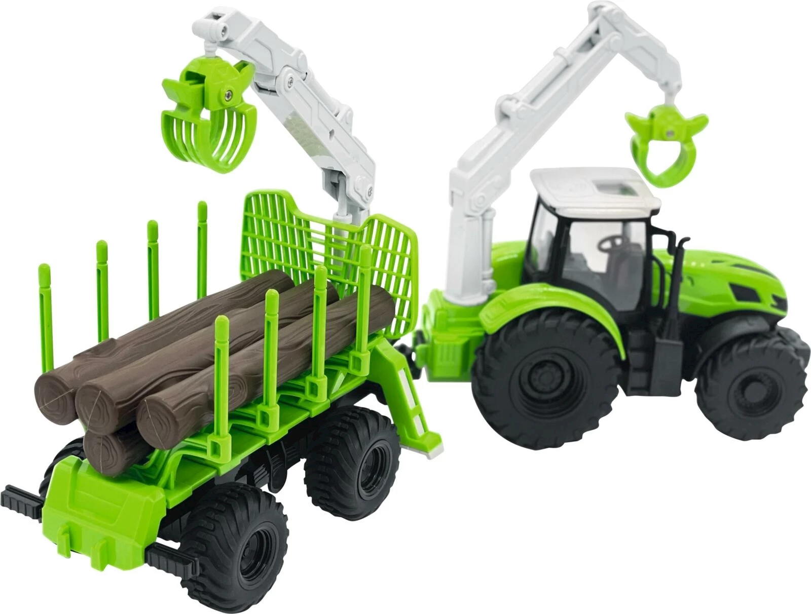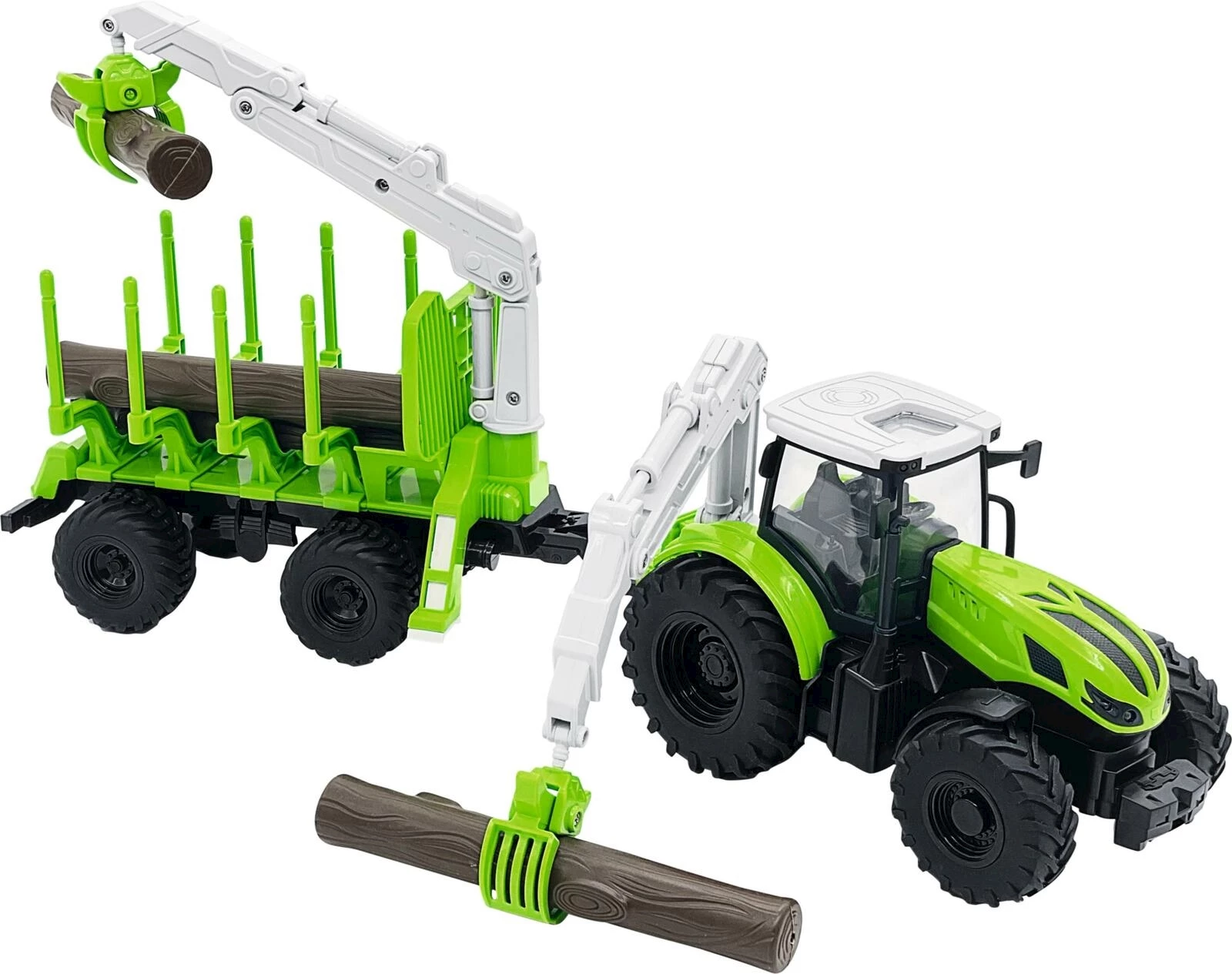 Der detailreiche Spielzeugtraktor mit Holztransportanhänger bringt echten Spass ins Kinderzimmer. Geeignet für Kinder ab 3 Jahren, begeistert das robuste Fahrzeug durch seine realistische Gestaltung und vielseitigen Spielmöglichkeiten. Der Anhänger ist mit beweglichen Greifarmen ausgestattet, die das einfache Auf- und Abladen der Holzstämme ermöglichen, ganz wie bei einem echten Forsttraktor.