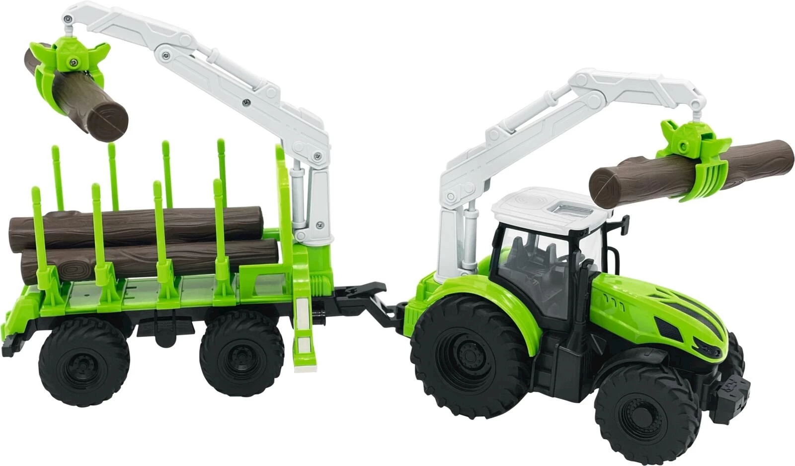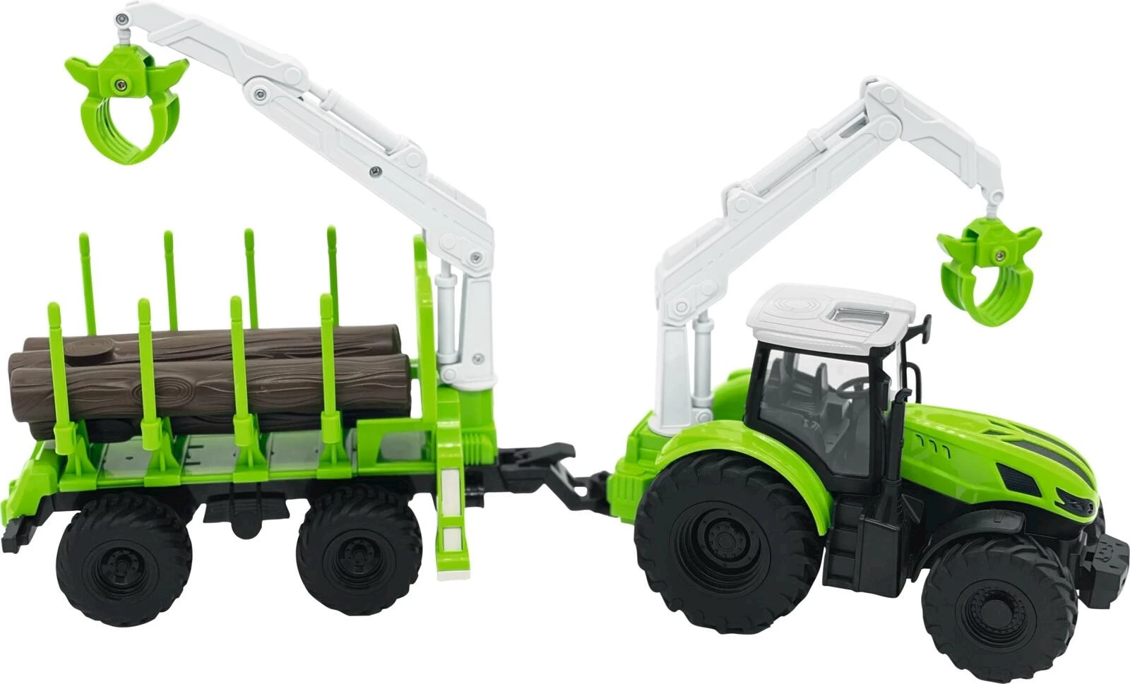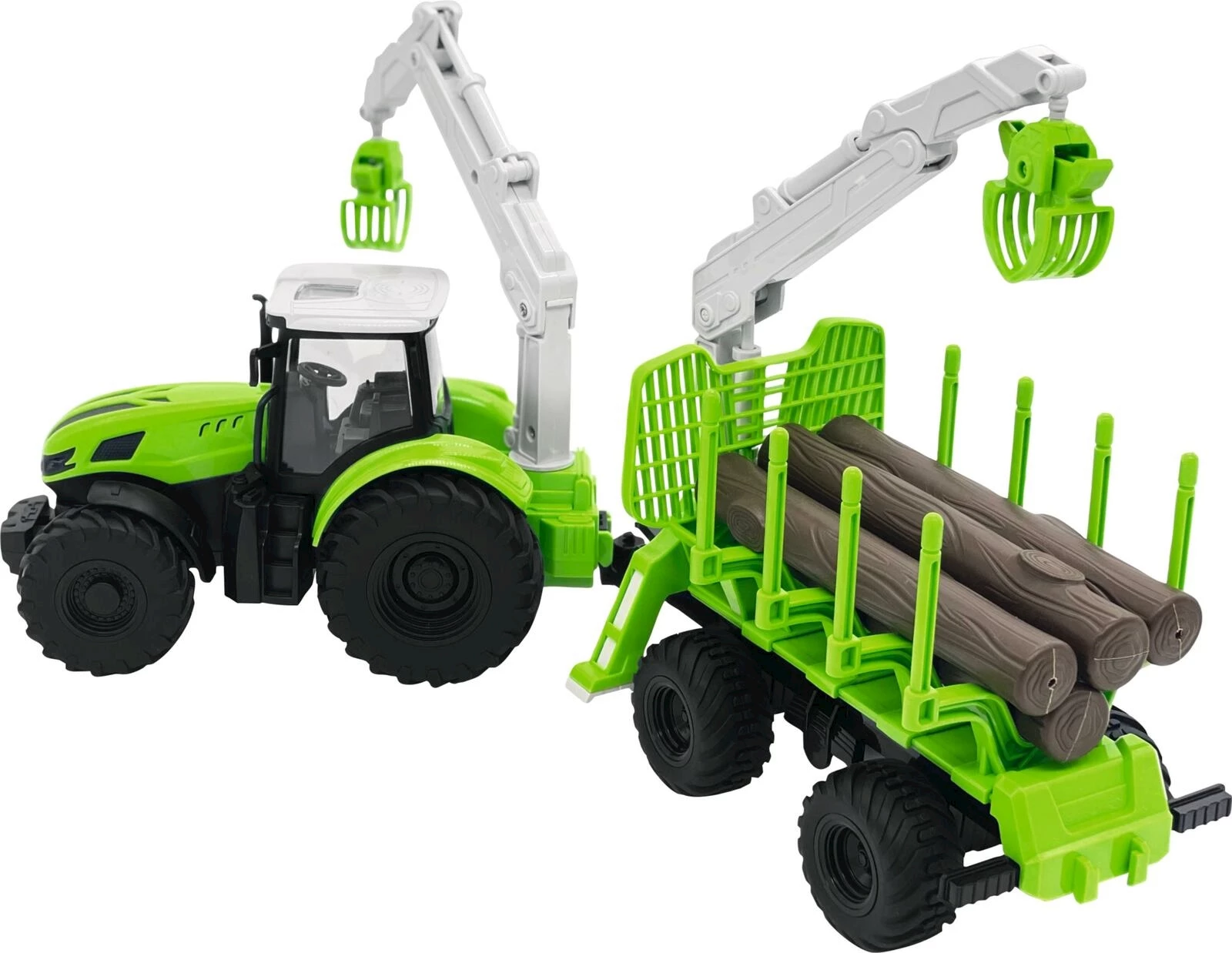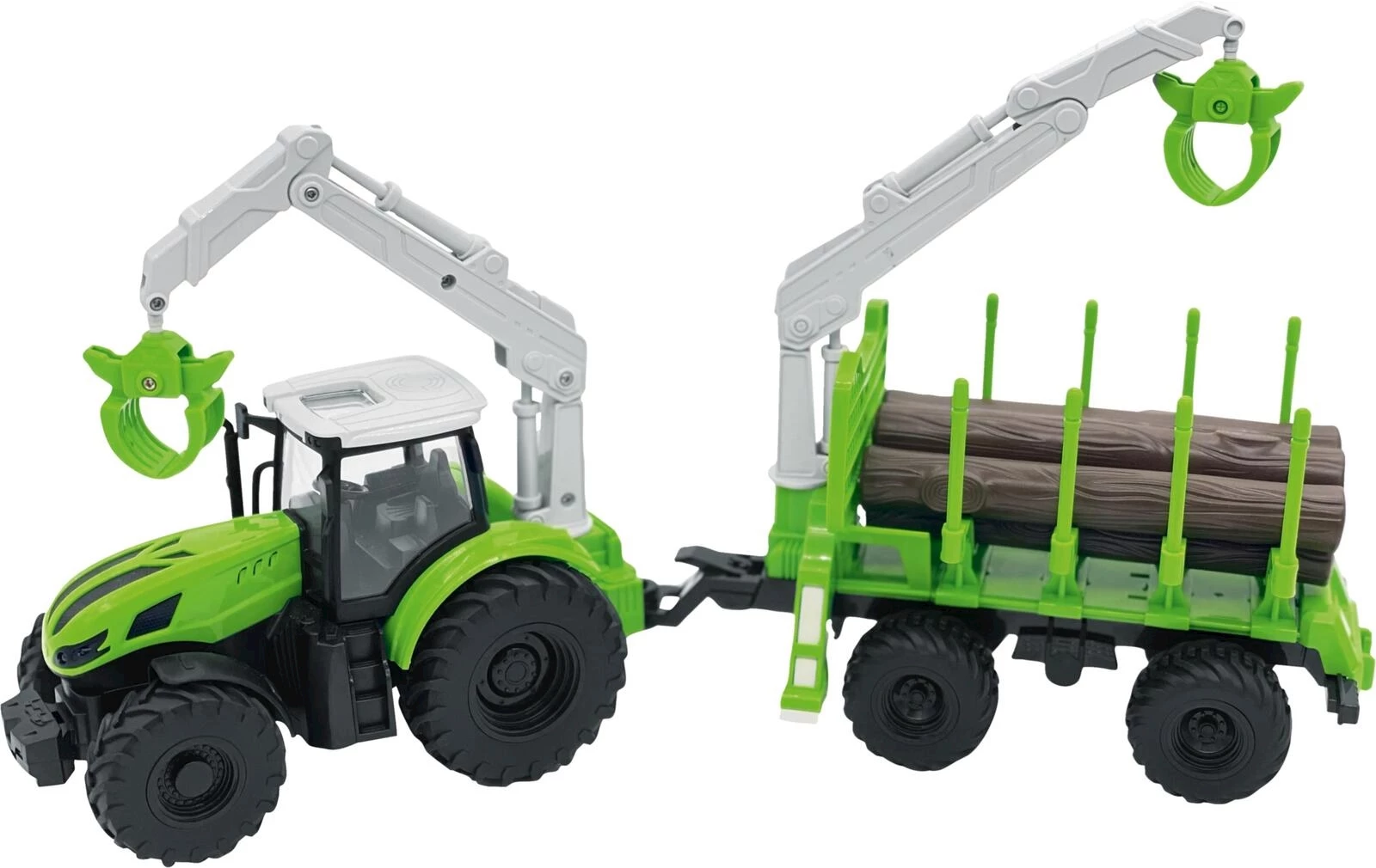 Der detailreiche Spielzeugtraktor mit Holztransportanhänger bringt echten Spass ins Kinderzimmer. Geeignet für Kinder ab 3 Jahren, begeistert das robuste Fahrzeug durch seine realistische Gestaltung und vielseitigen Spielmöglichkeiten. Der Anhänger ist mit beweglichen Greifarmen ausgestattet, die das einfache Auf- und Abladen der Holzstämme ermöglichen, ganz wie bei einem echten Forsttraktor.