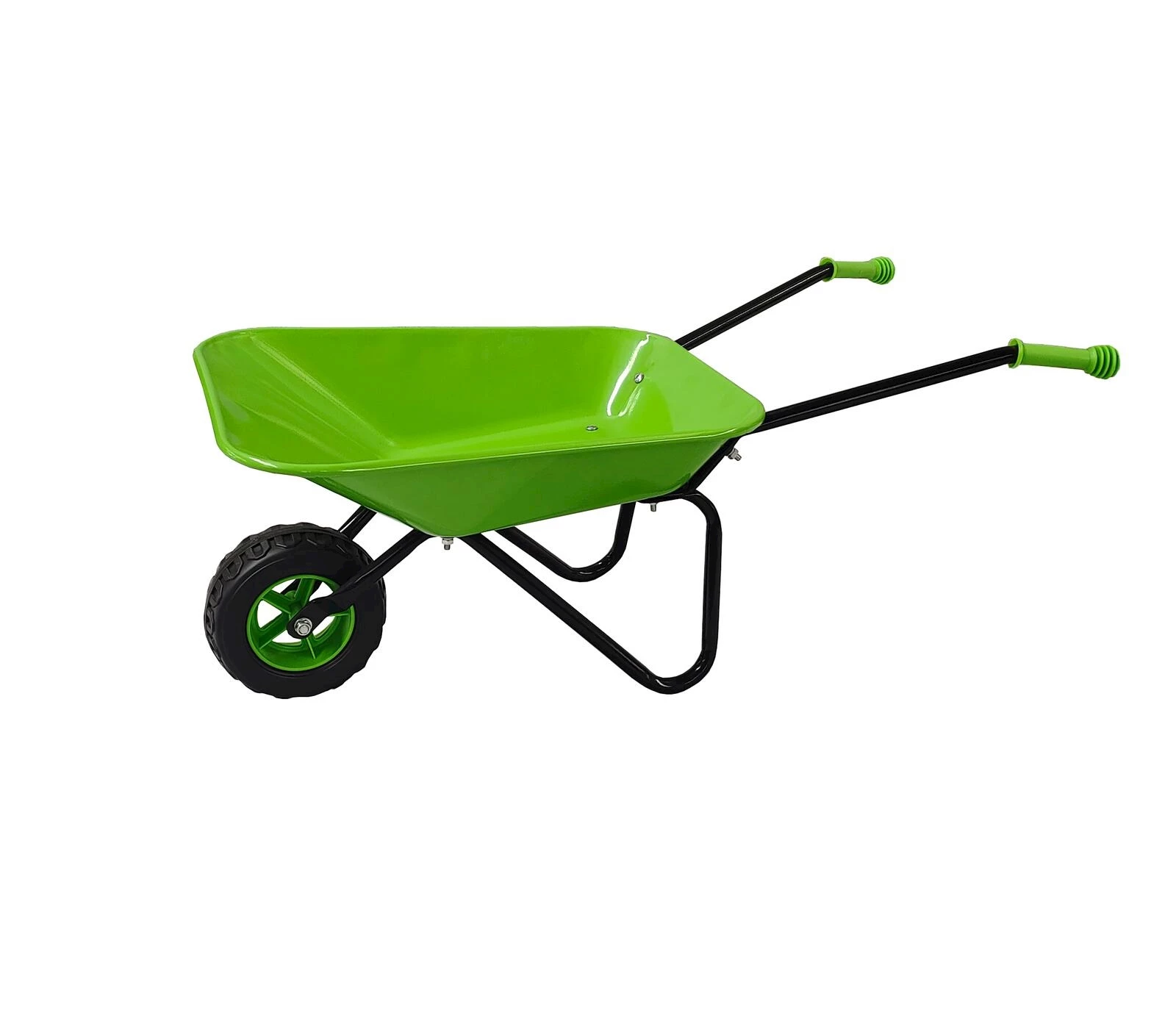 Diese grüne Kinderkarrette aus stabilem Metall ist das ideale Gartenspielzeug für Kinder ab 3 Jahren, die aktiv im Garten mithelfen oder einfach draussen spielen möchten. Mit kompakten Massen von 79 × 45 × 33 cm ist diese Kinderschubkarre perfekt an kleine Hände angepasst. Sie bietet ausreichend Platz für Erde, Sand, Laub oder Spielzeug und punktet mit einem robusten Metallrahmen sowie rutschfesten Kunststoffgriffen, die für sicheren Halt sorgen.