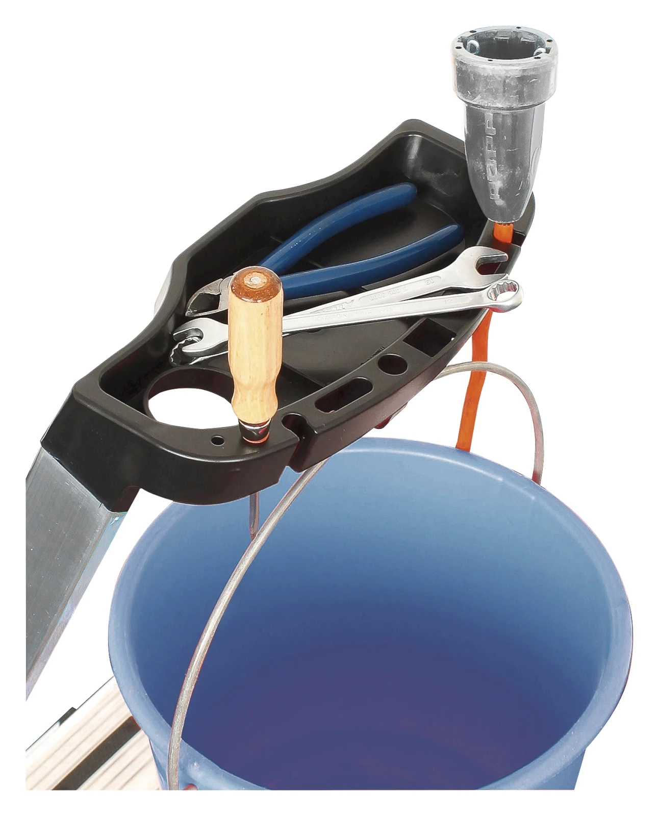 Die komfortable und leichte Aluminium-Sicherheits-Stehleiter mit vielen praktischen Ablagemöglichkeiten.