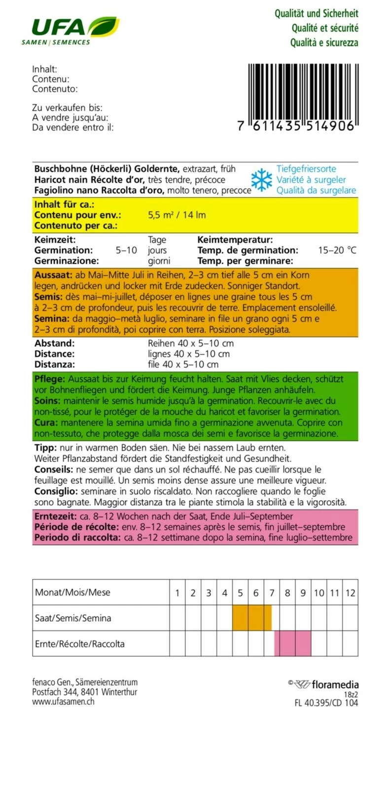 Die Goldernte ist eine bewährte, robuste Buschbohne mit aufrechtem und kräftigem Wuchs. Sie bildet lange, runde und fleischige Hülsen, die fadenlos und sehr zart sind. Durch ihren feinen Geschmack eignet sie sich besonders gut für die Zubereitung von Bohnensalat, aber auch für viele andere Gemüsegerichte. Die Pflanzen sind ertragreich, pflegeleicht und bestens für den Anbau im Hausgarten oder Hochbeet geeignet.