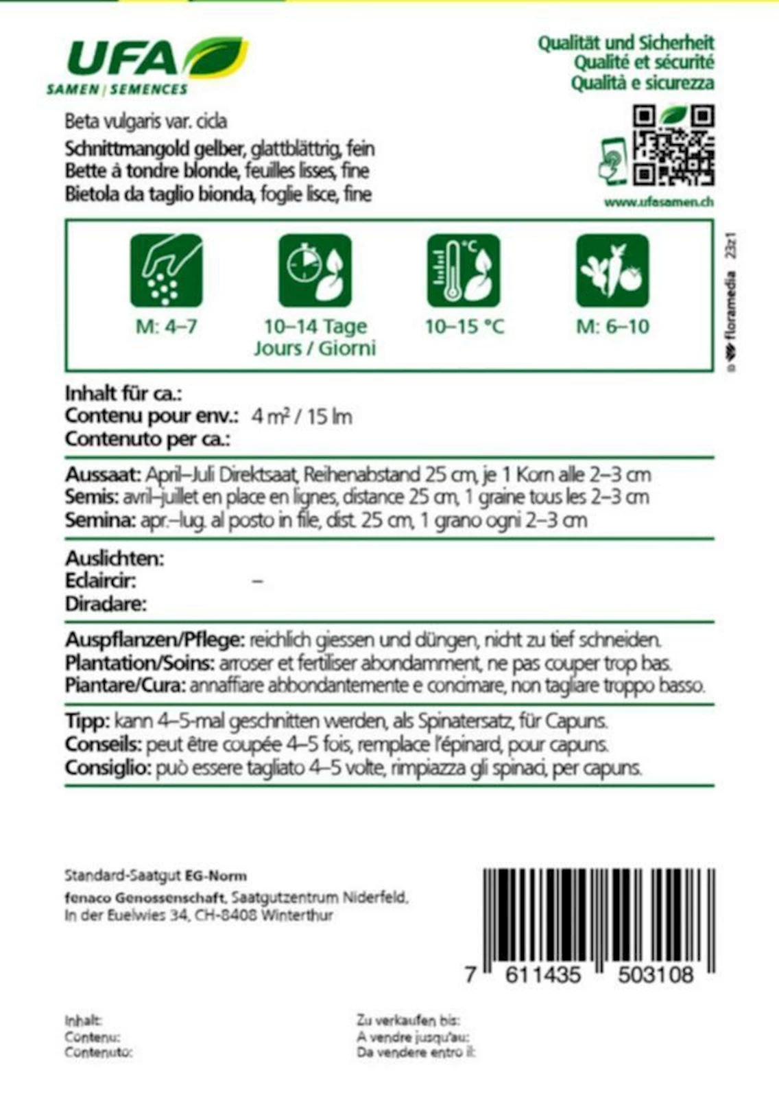 Schnittmangold ist relativ kälteresistent. Für eine lange Ernteperiode regelmässig schneiden und auf ausreichende Nährstoffversorgung achten.