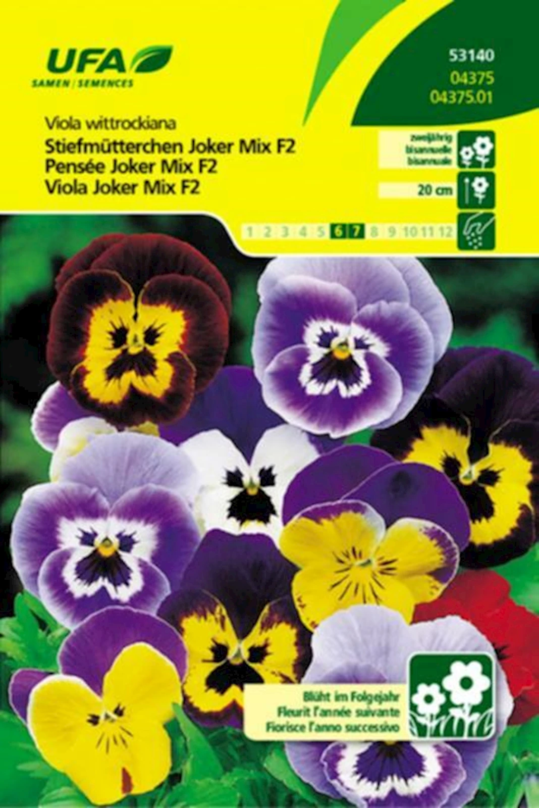 F2-Hybride, Prachtmischung. Kontrastreiche Blüten mit vielen intensiven Farben, früh und sehr reichblühend. Attraktiver Blütenschmuck.