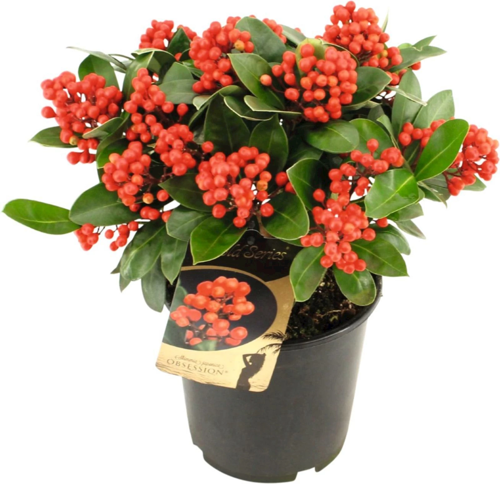 Auch Blütenskimmie genannt, ist ein immergrüner Zwergstrauch aus Ostasien. Mit roten Beeren und duftenden weissen Blüten sind sie im Herbst und Frühjahr besonders schön.