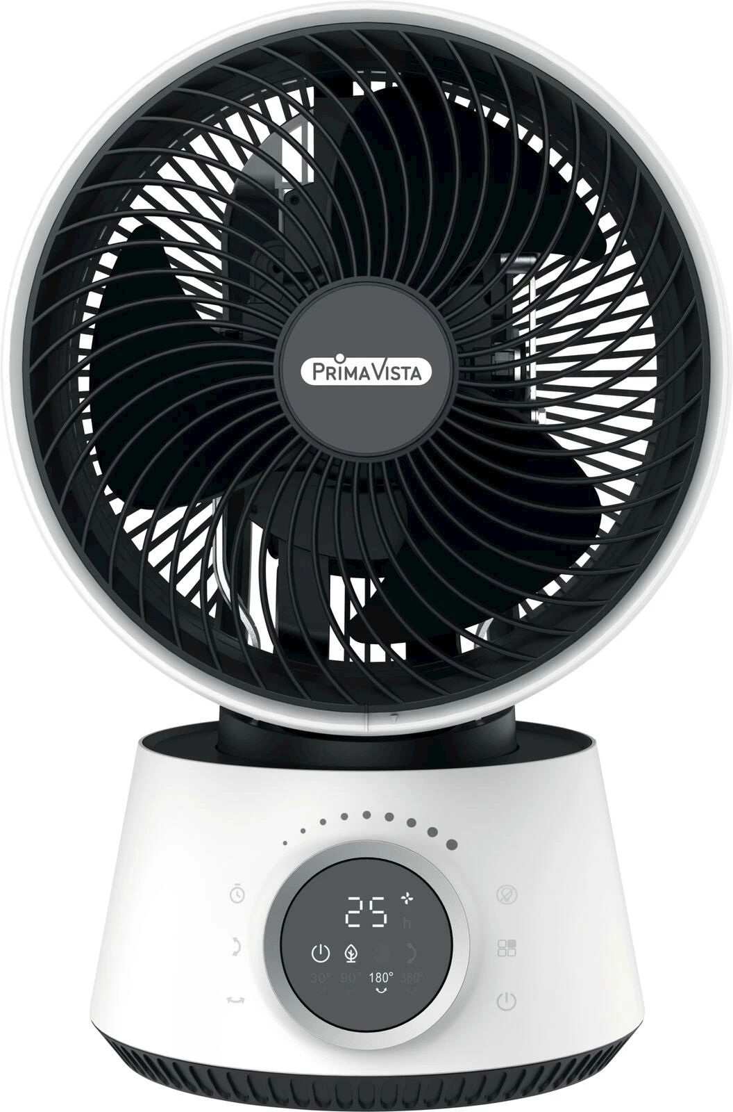 Schwenkbereich horizontal bis 360°, vertikal bis 90°. Mit Timerfunktion, 32 Geschwindigkeitsstufen und 3D-Oszillation. Leistung: 26 Watt. Masse: 37,3 × 25,5 × 23,5 cm. Inkl. Fernbedienung.