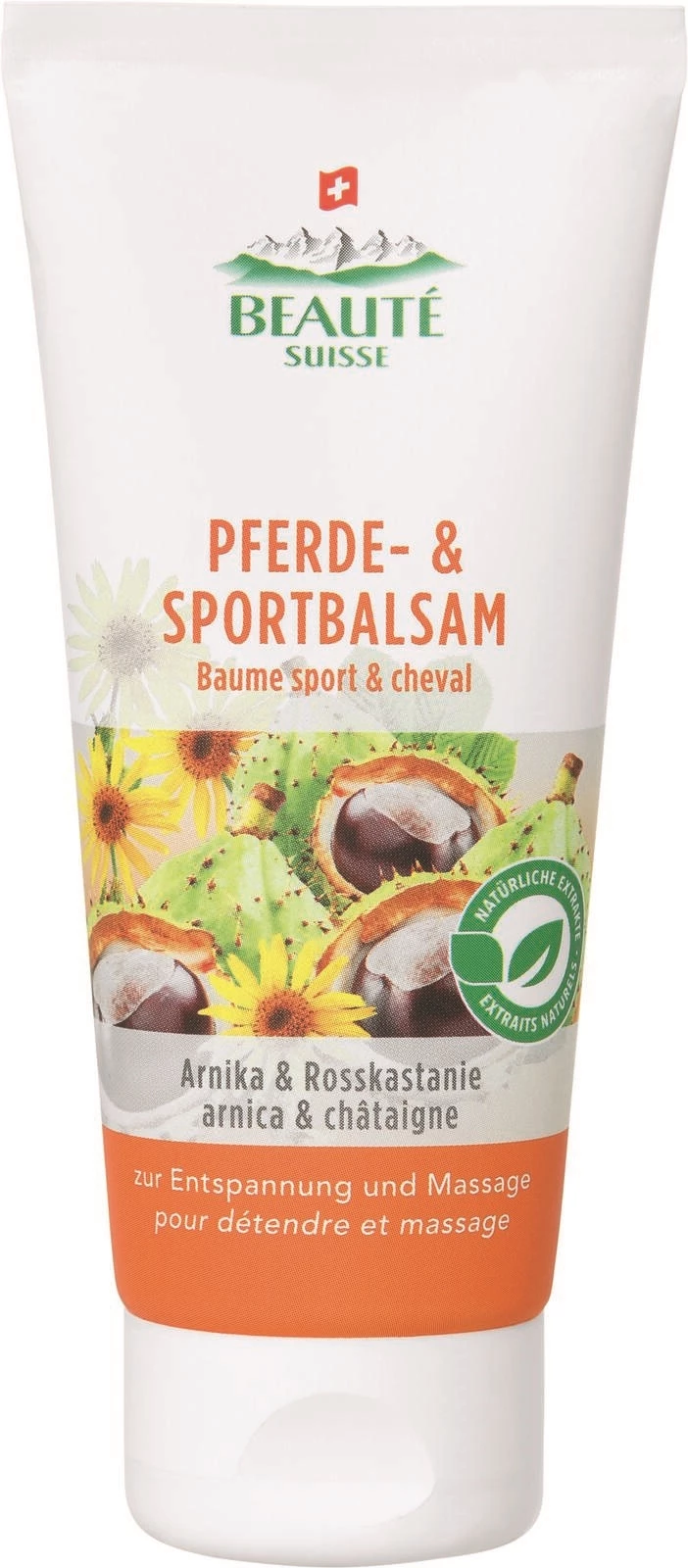 Beauté Suisse. Zur Entspannung und Massage bei Verspannungen, körperlicher Anstrengung und Ermüdung. Mit natürlichem Arnika- und Kastanienextrakt. 100 ml.