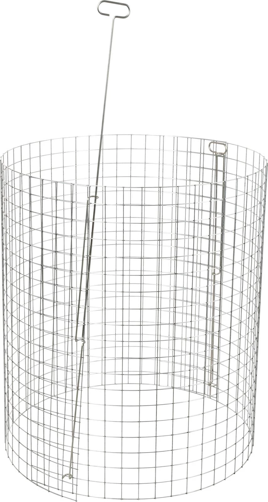 Okay. Runder Komposter aus verzinktem Drahtgitter (2,85 mm), ca. 670 l Volumen, 4,5 × 5 cm Maschen. Ideal für Gartenabfälle, gut belüftet, stabil und platzsparend.
