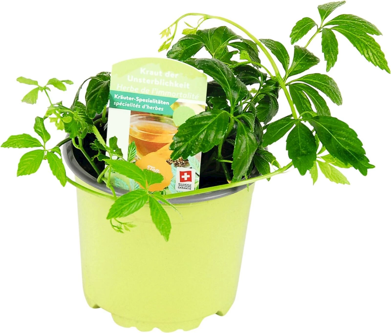 Das Unsterblichkeitskraut (Gynostemma pentaphyllum) ist eine schlanke, kletternde, ausdauernde Pflanze und erreicht Wuchslängen von vier bis acht Metern. Sie mag sonnige bis halbschattige Standorte welche einen stets feuchten Boden haben. Sie blüht gelblich bis grün zwischen Juni und September. Die Blätter werden zum Süssen von Tees verwenden oder zu grünen Smoothies verarbeiten. Auch als Salatzutat können sie zum Einsatz kommen.