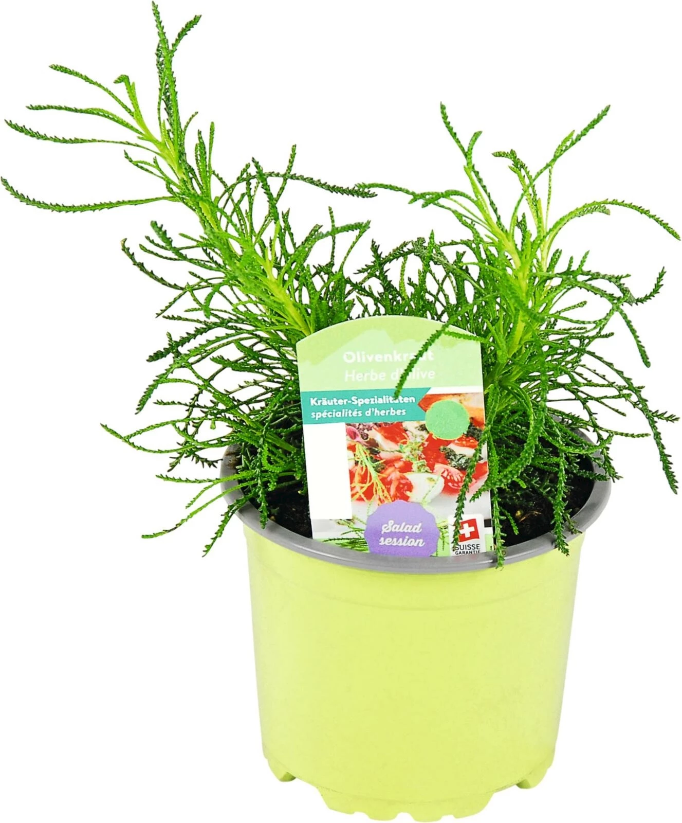 Das Olivenkraut (Santolina viridis) wächst eher buschig und verholzt im unteren Bereich. Der ganze Halbstrauch duftet angenehm würzig nach Oliven. Er blüht zwischen Juni und August gelb und ist sehr unempfintlich gegenüber Pflanzenkrankheiten und Schädlingen. Der Boden sollte mässig feucht, nährstoffreich und humusreich sein.