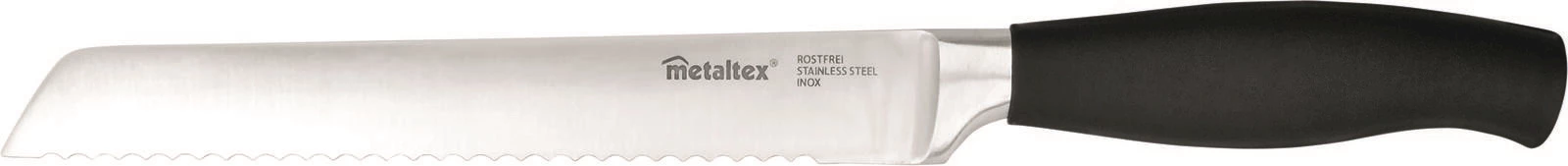 Das Comfort Brotmesser hat ein ergonomischer soft-touch Griff und liegt gut in der Hand. Vor Gebrauch spülen. Länge: 34 cm. Klinge Edelstahl AISI 420J2.