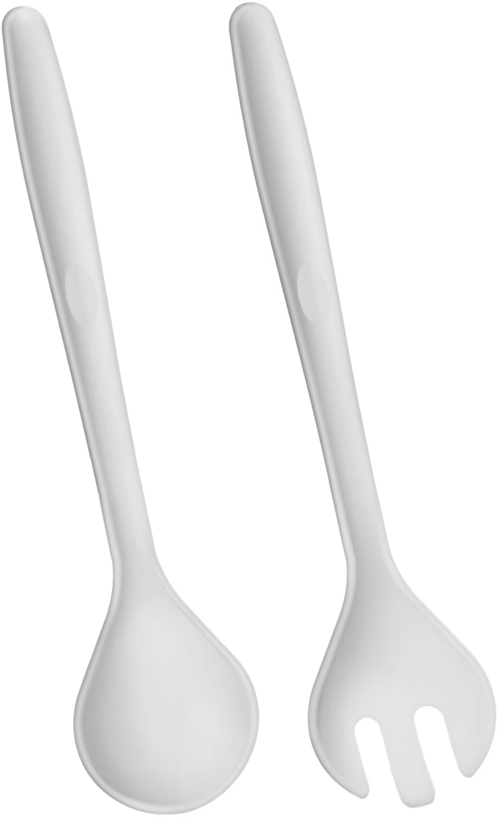 Das Salatbesteck ist aus weissem Kunststoff und hat eine Länge von je ca. 29 cm.