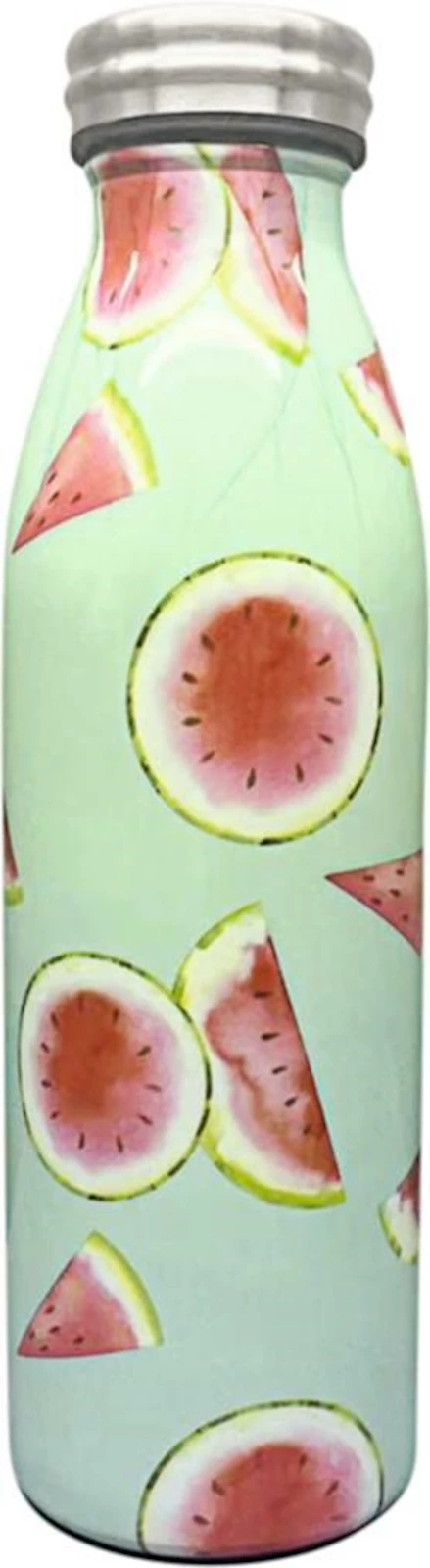 Praktische Thermosflasche mit einem Fassungsvermögen von einem halben Liter, hält Ihr Getränk stundenlang kühl oder warm. Die robuste Flasche mit Melonenmuster auf pastellgrünem Hintergrund ist mit einen Deckel aus Metall ausgestattet. Die Öffnung der Trinkflasche hat eine praktische Grösse, sodass sie einfach befüllt werden kann. Sei es für Picknick, zum Wandern, beim Sport oder im Büro, ob für kalte oder warme Getränke, die Thermosflasche ist ein zuverlässiger Begleiter.